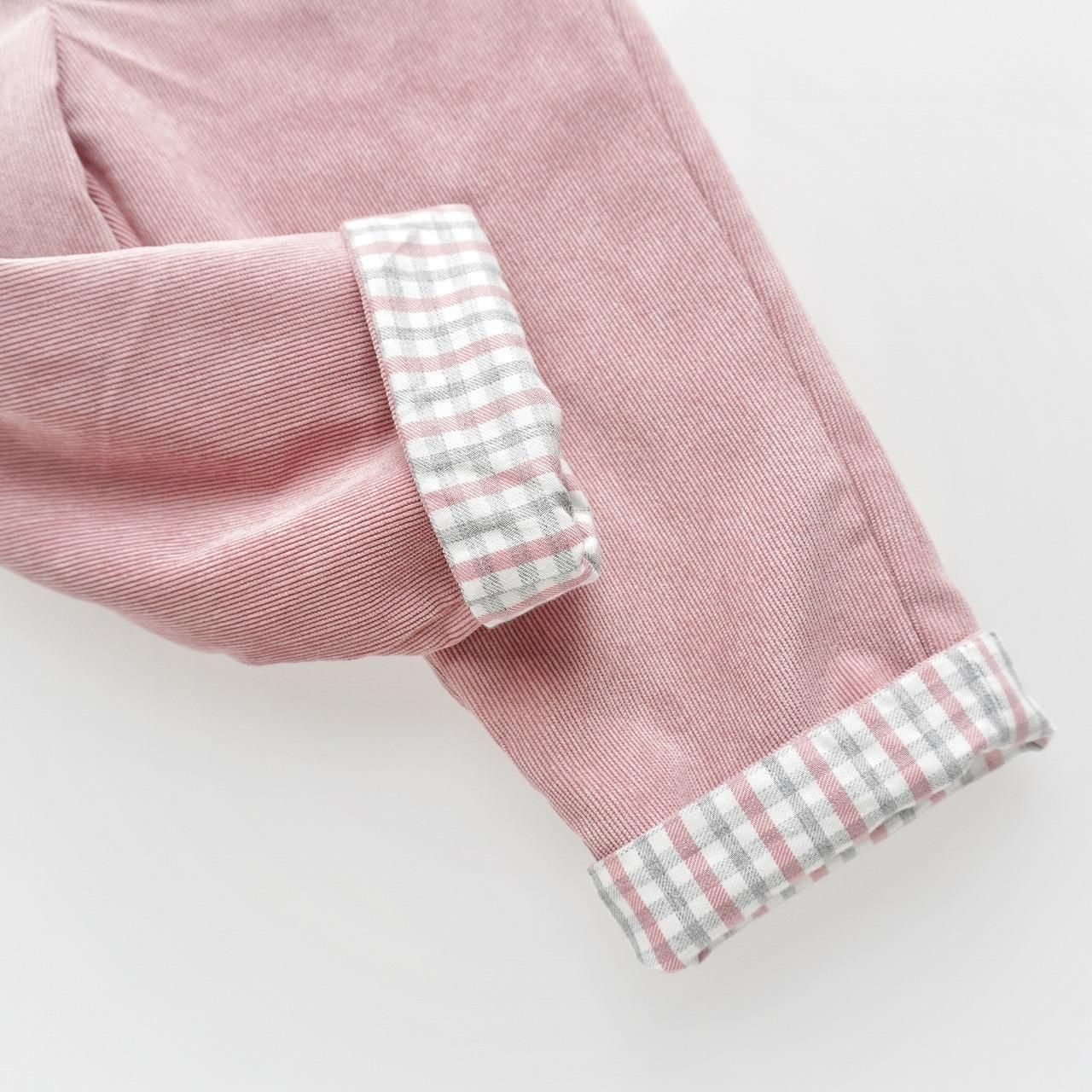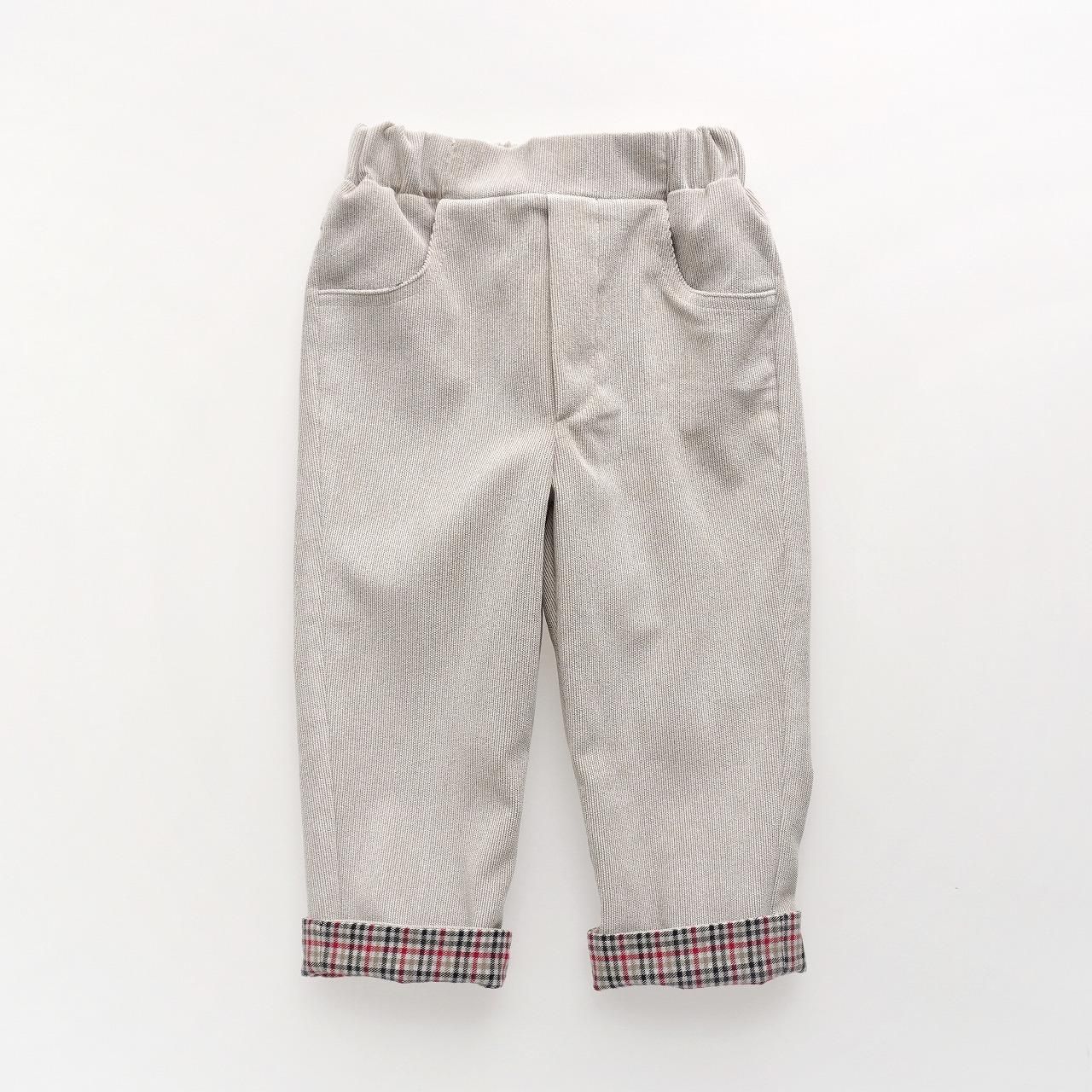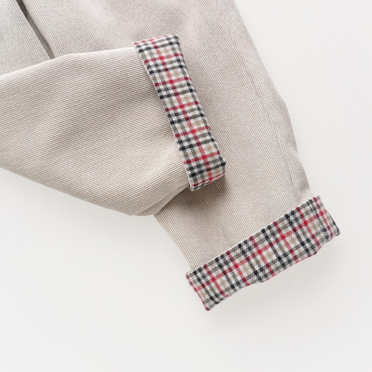 折り返してもお召しいただけるよう、足首部分の裏地にはチェック生地をコーディネートしました。