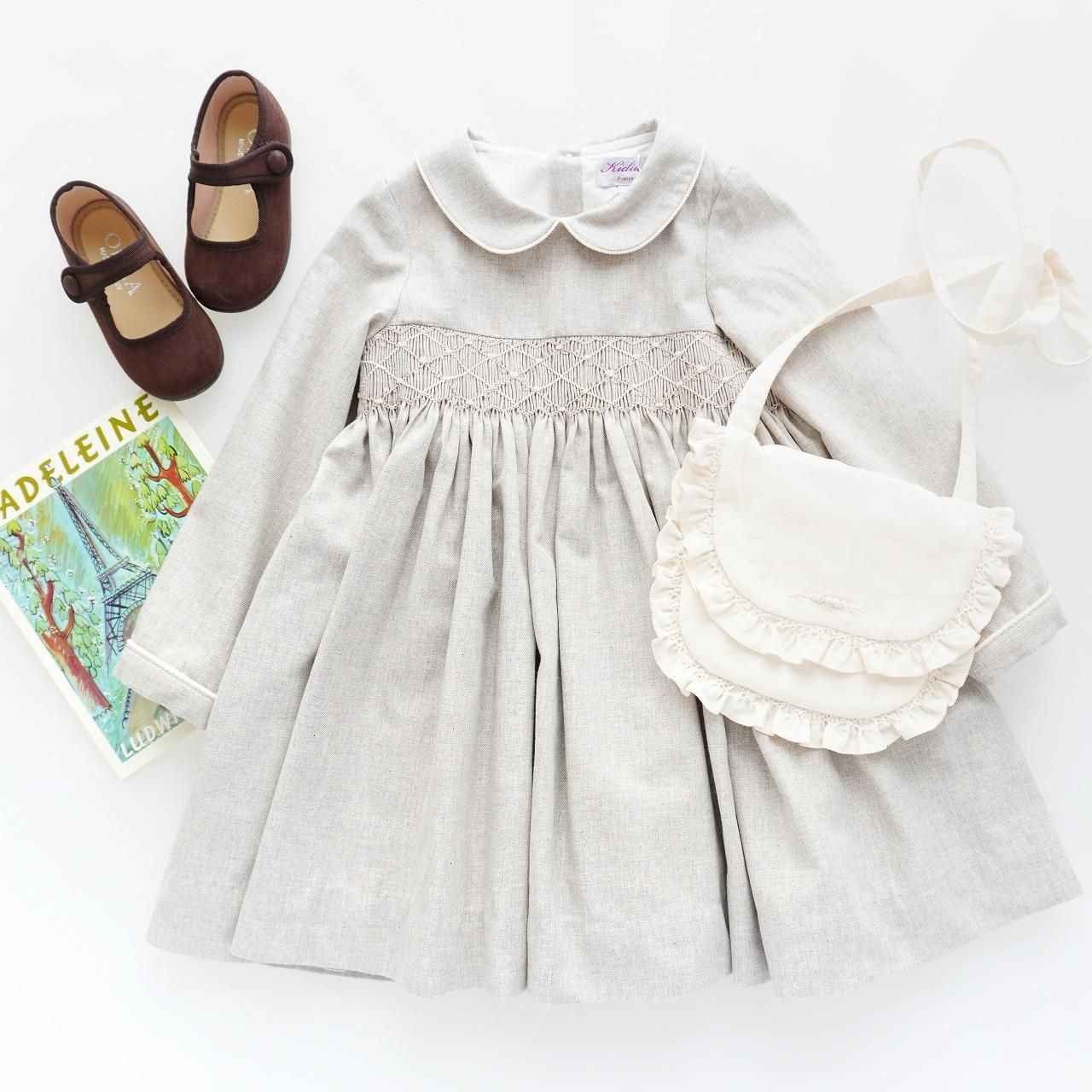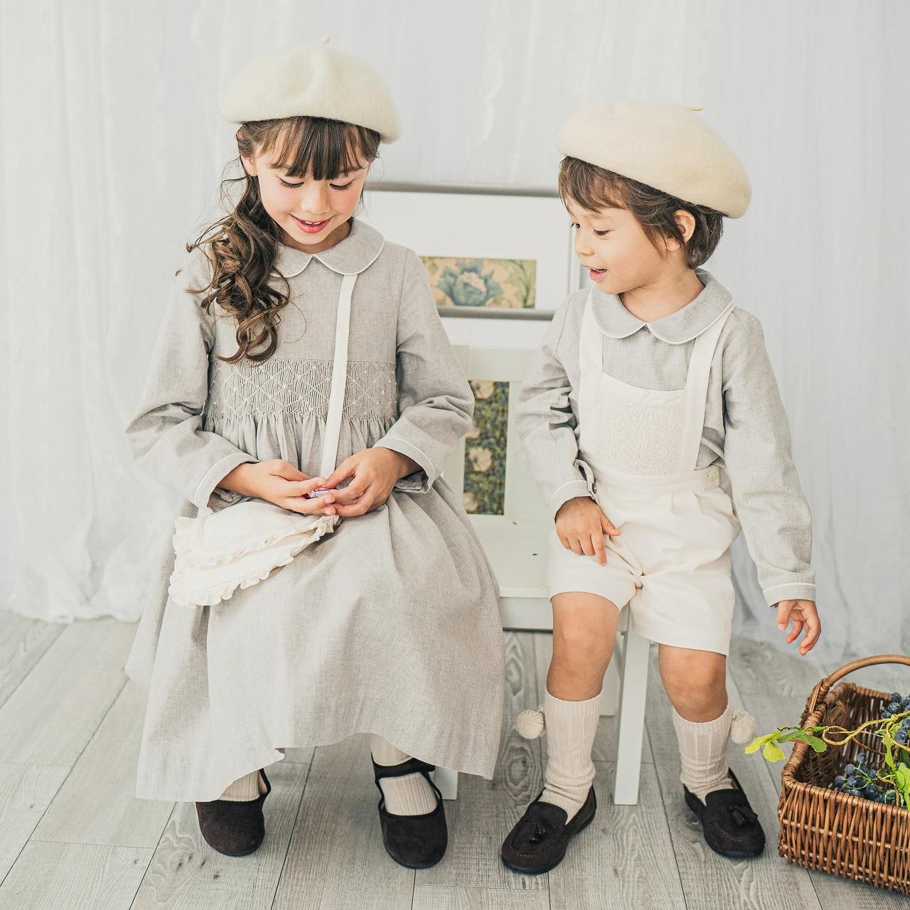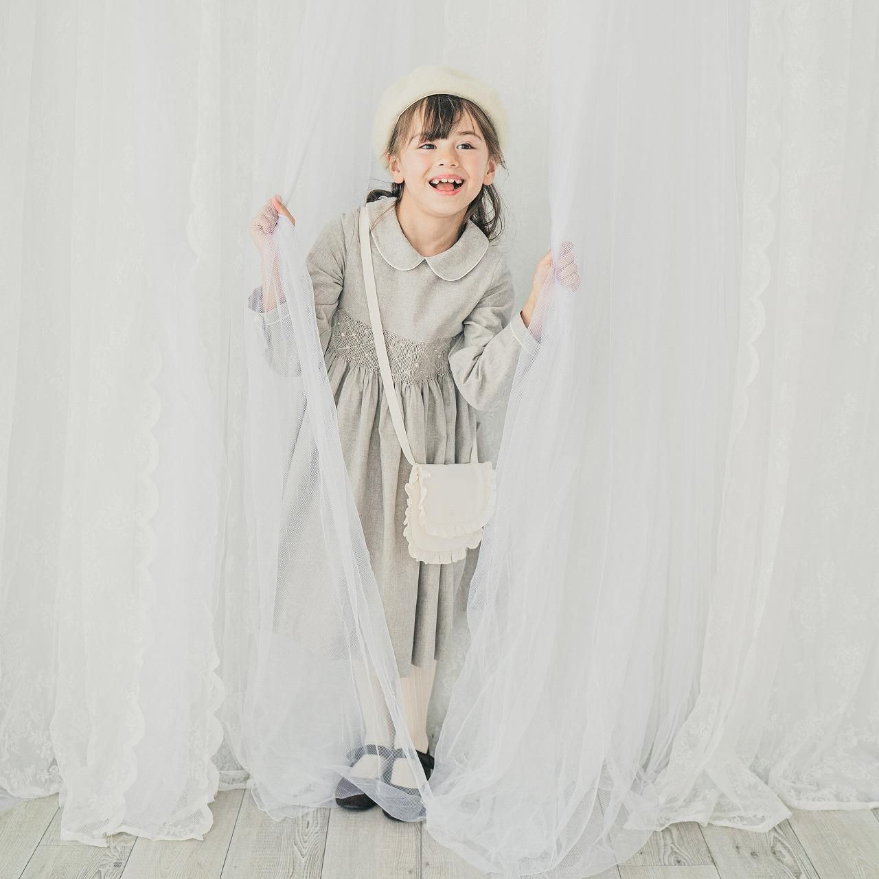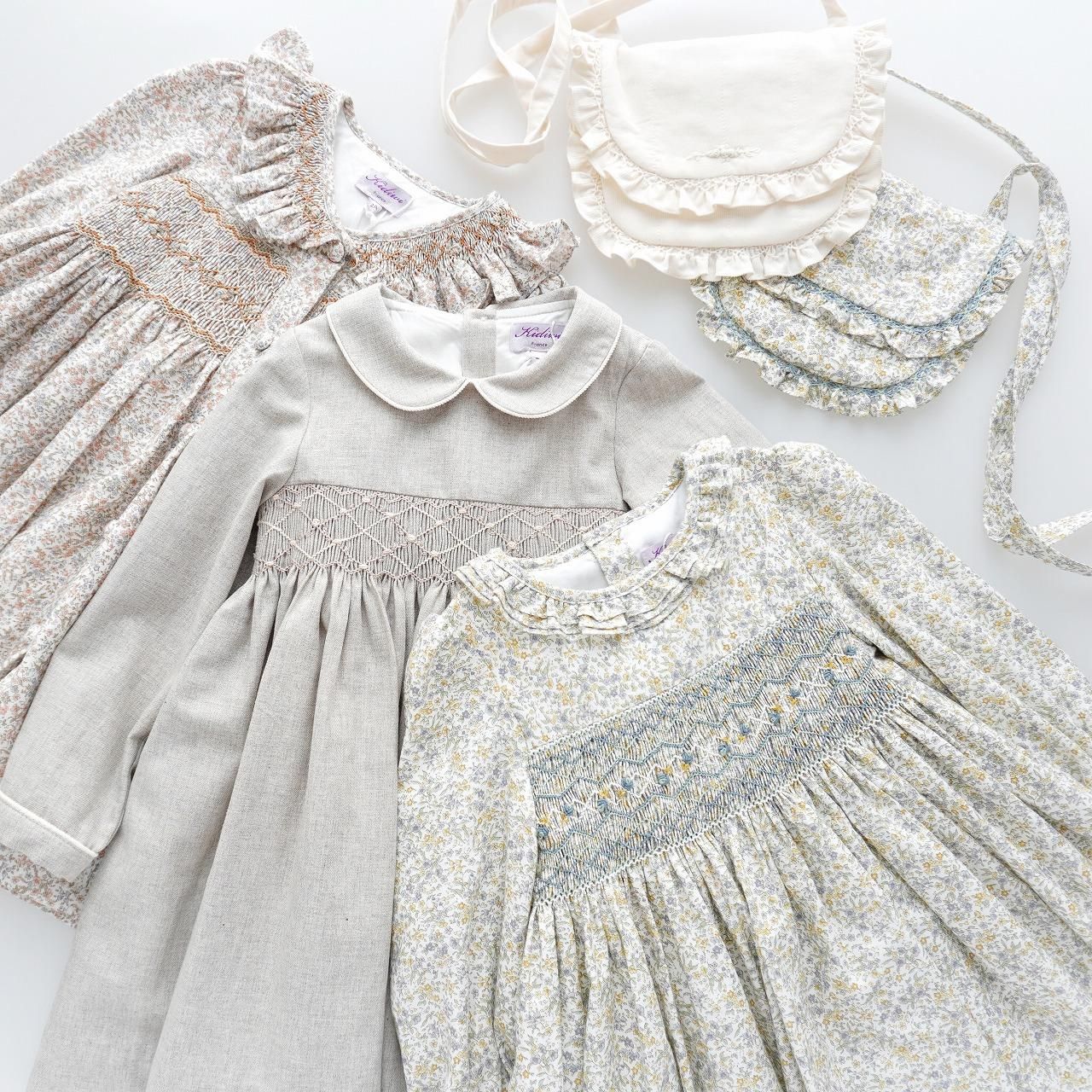 同色のハンドスモッキングの贅沢さが存分に味わえる一着です。