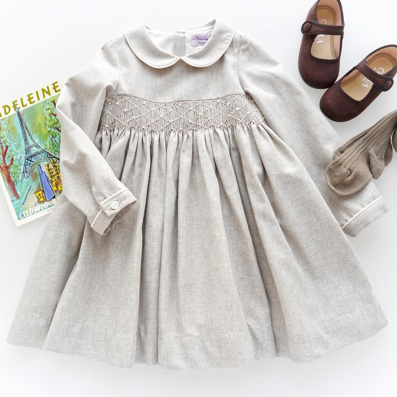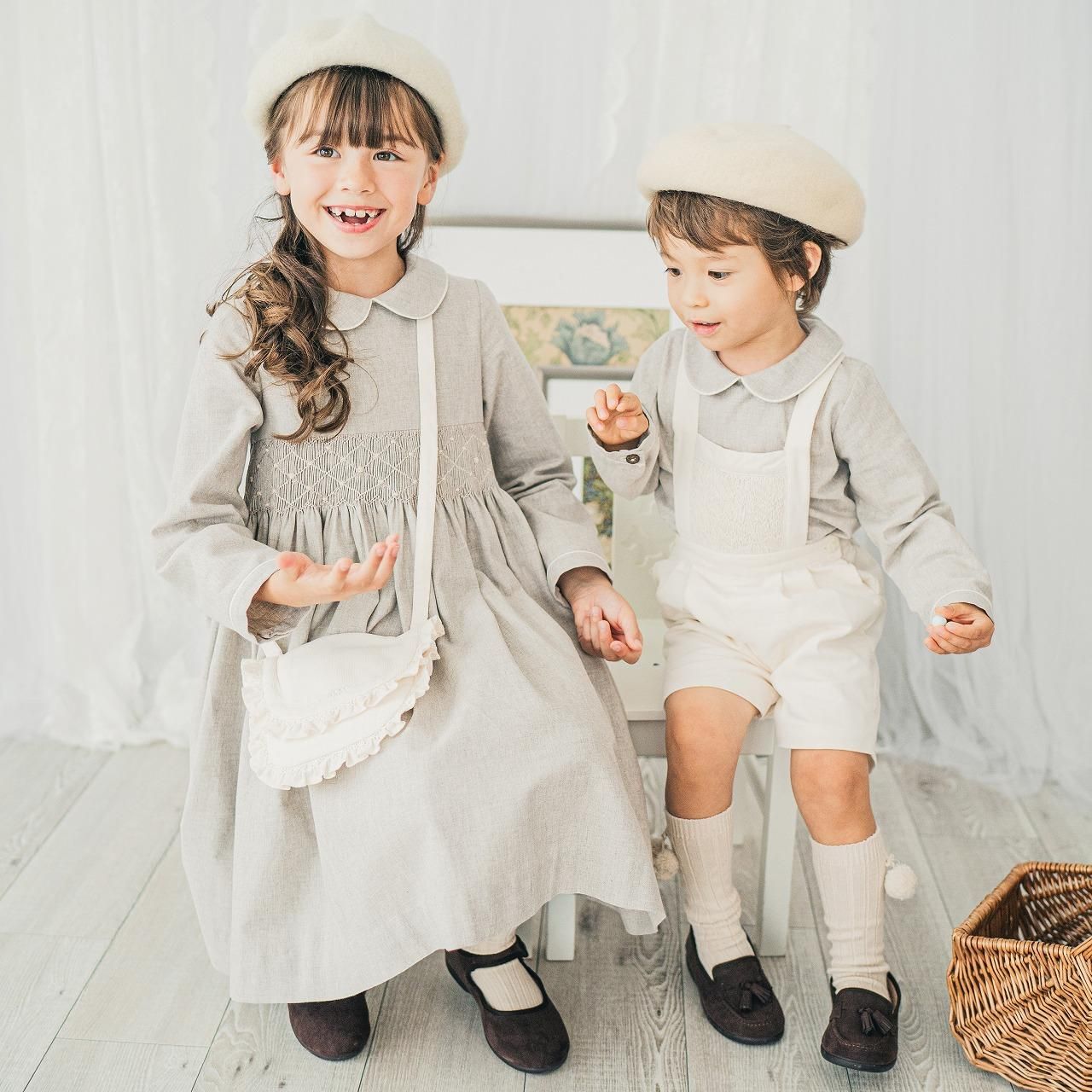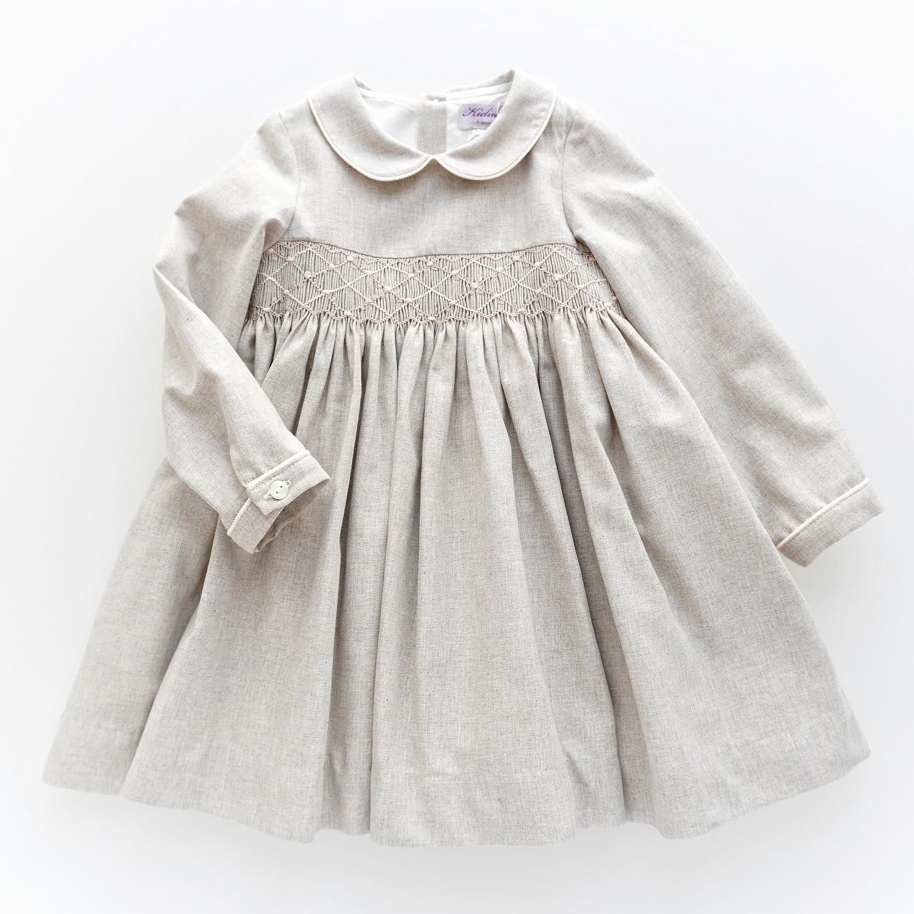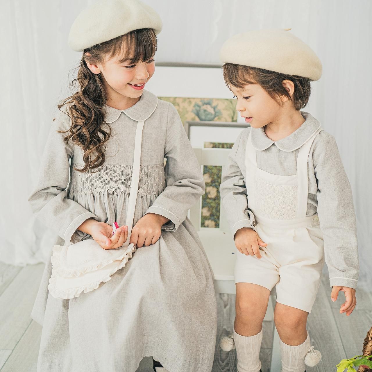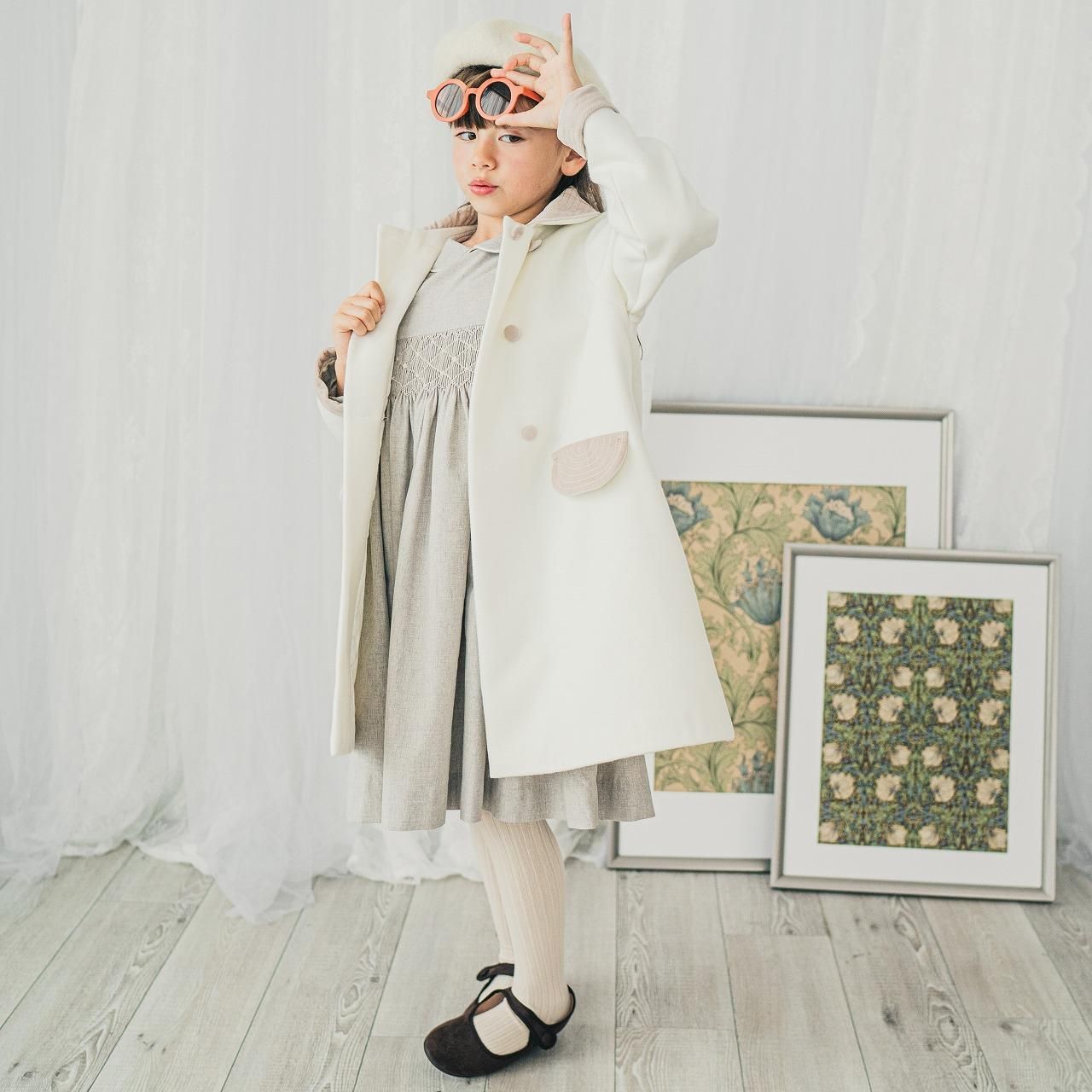 同色のハンドスモッキングの贅沢さが存分に味わえる一着です。