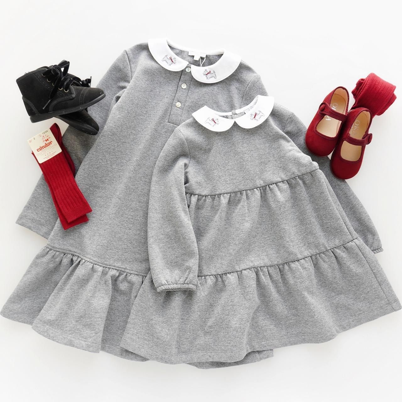 シックな深みのある杢グレーのお生地には、かわいらしいテリア犬が♪