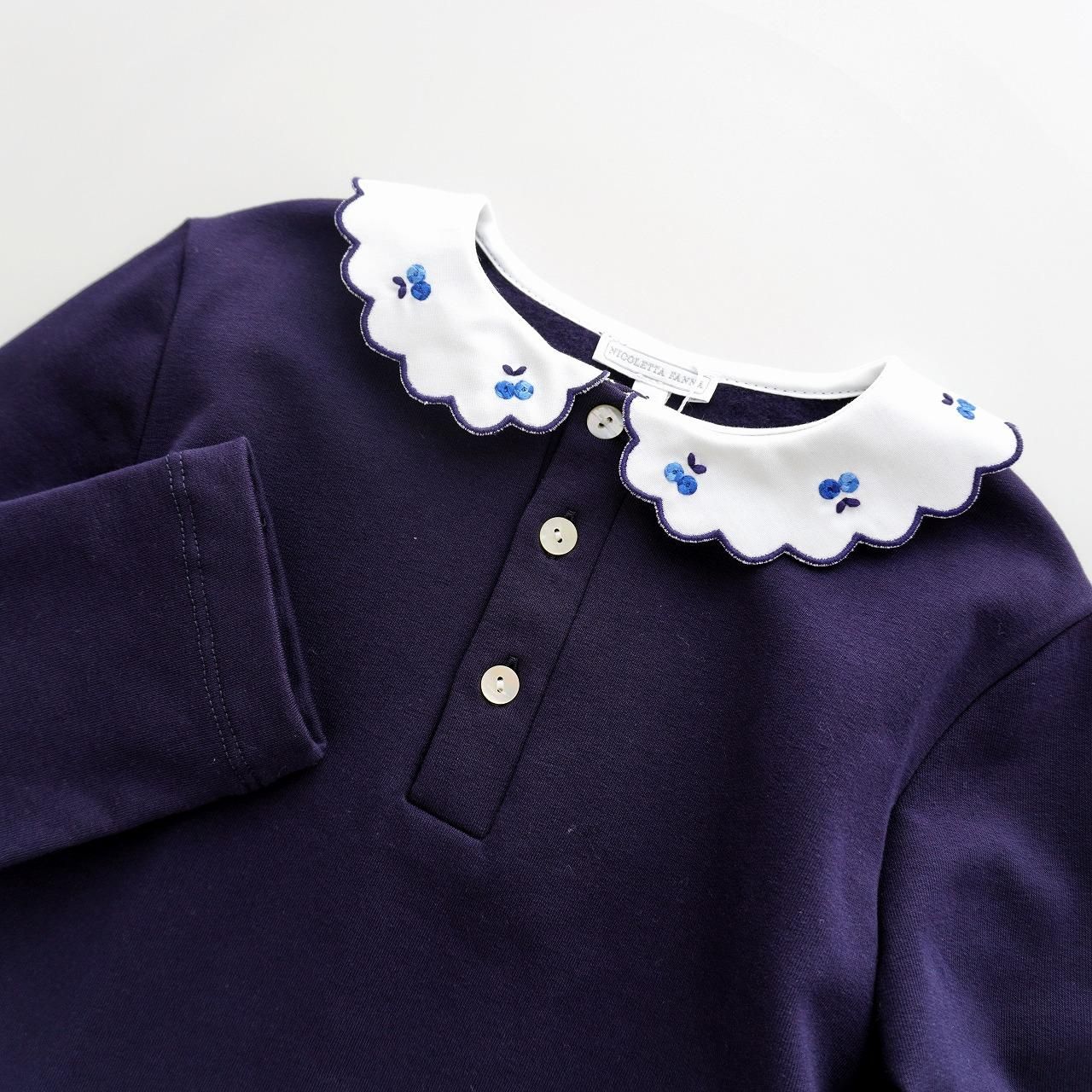 スカラップに、ブルーベリーのような、チェリーのような模様がかわいらしいデザイン。