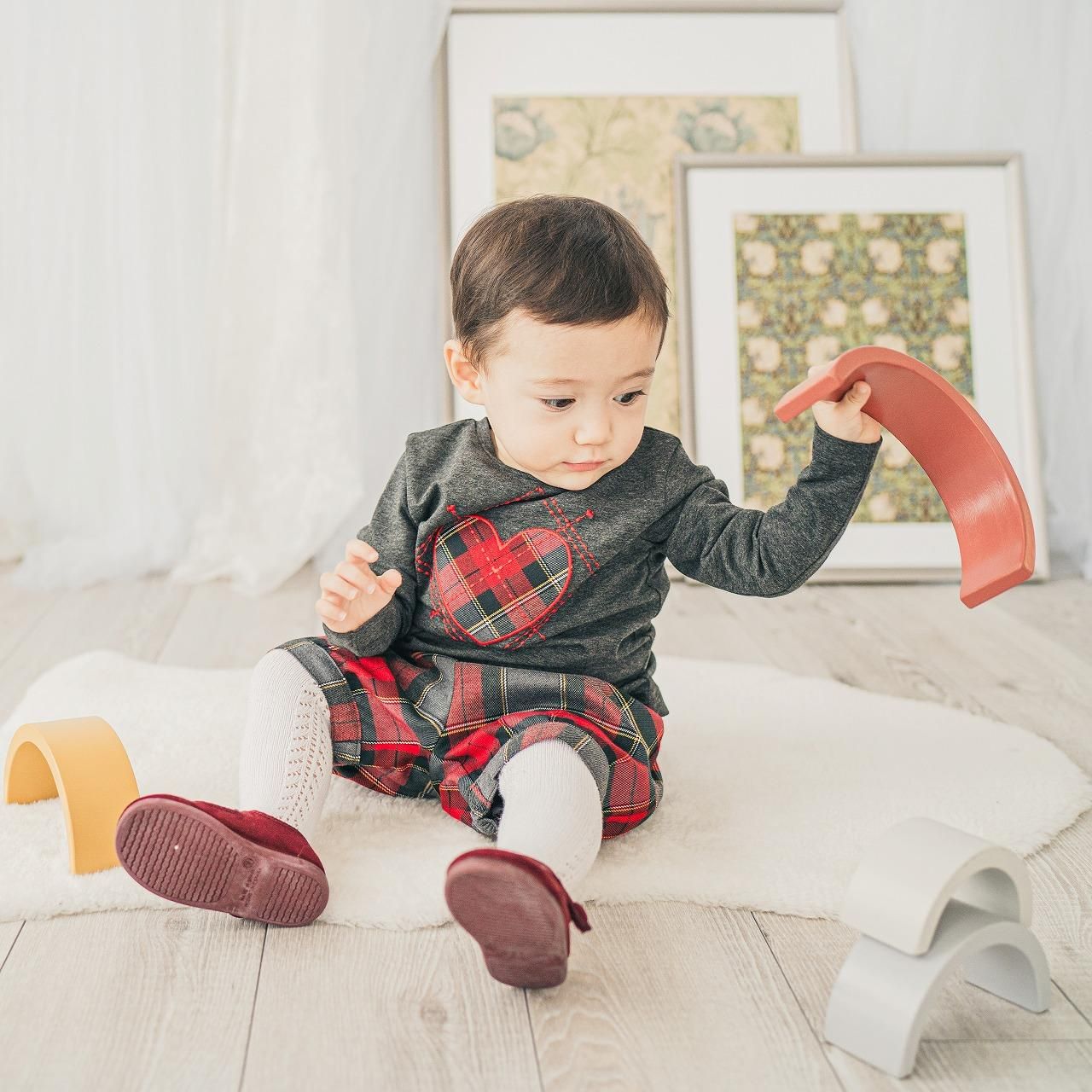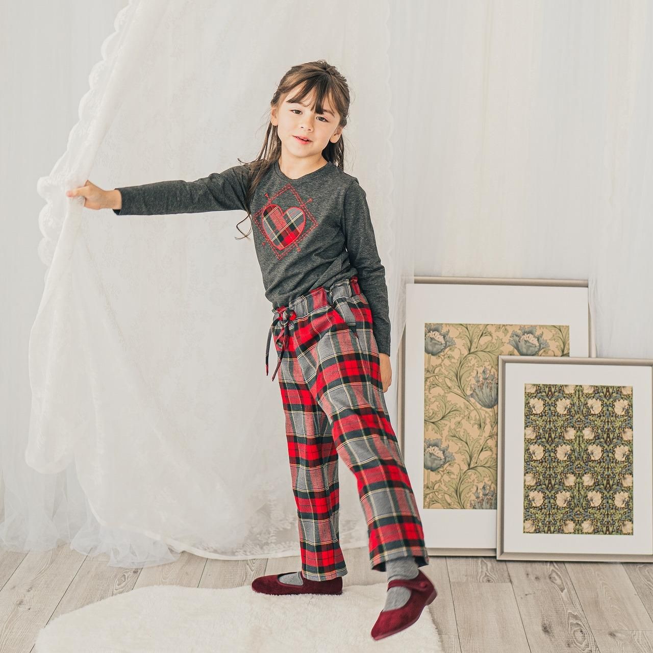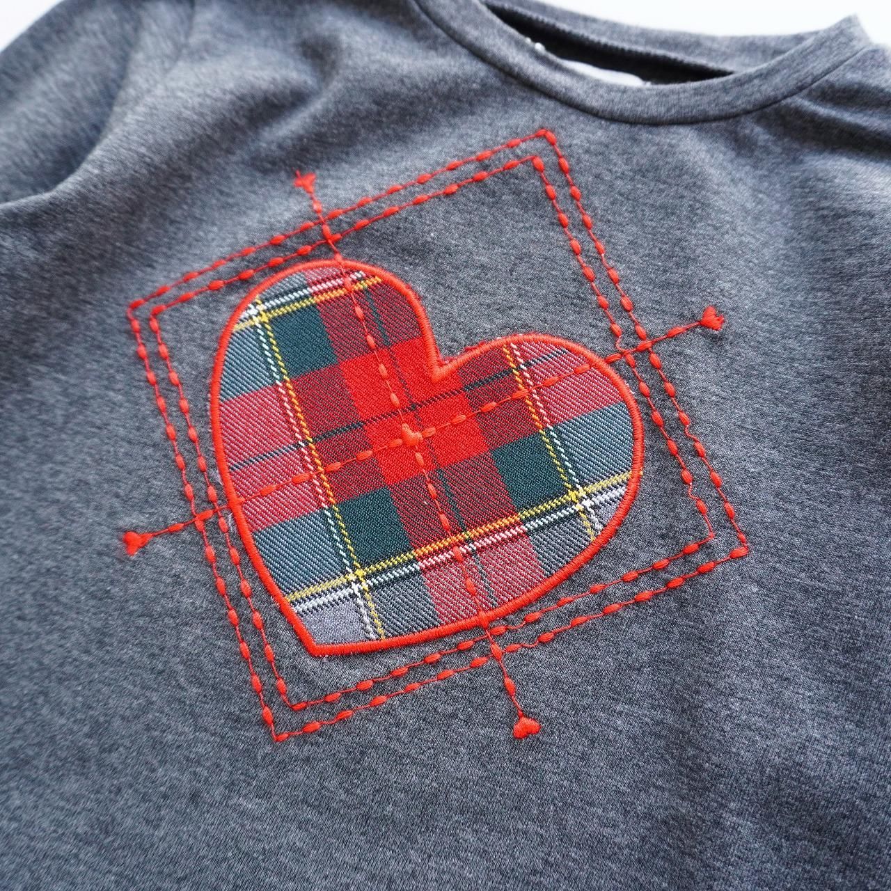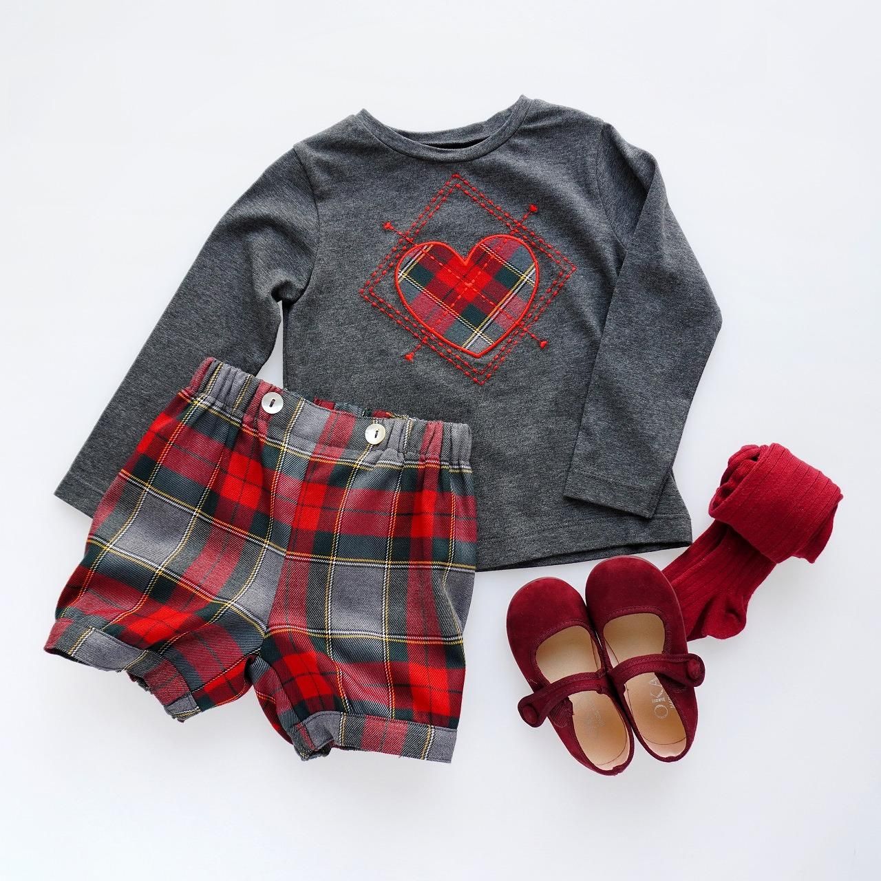 パッチワークの生地は、定番の赤×グレー×グリーンのタータンチェックで、ぐっと秋冬らしくなる素敵なカラー。
