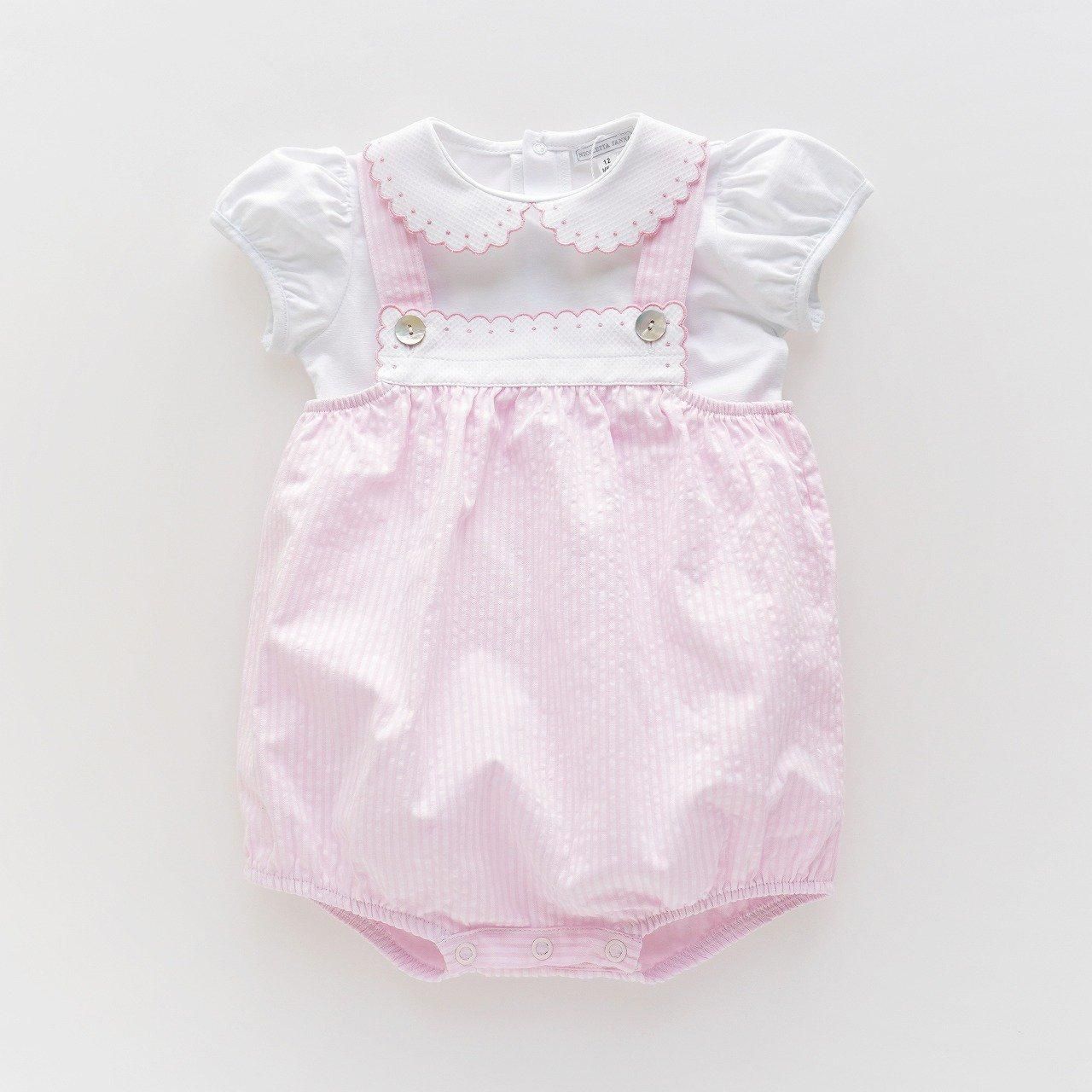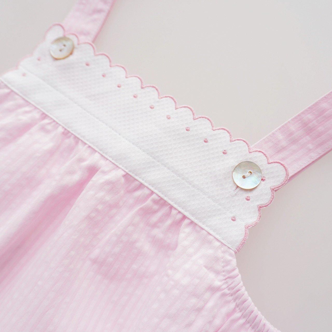 お胸のパネル部分には、ピケ素材にスカラップ&ドット刺繍の 愛情を感じる手の込んだお品。