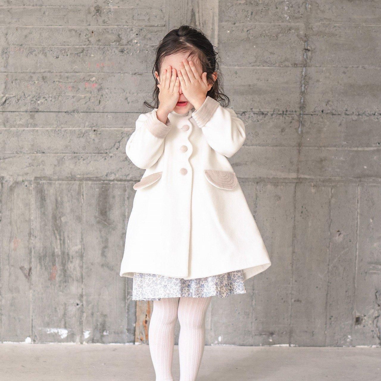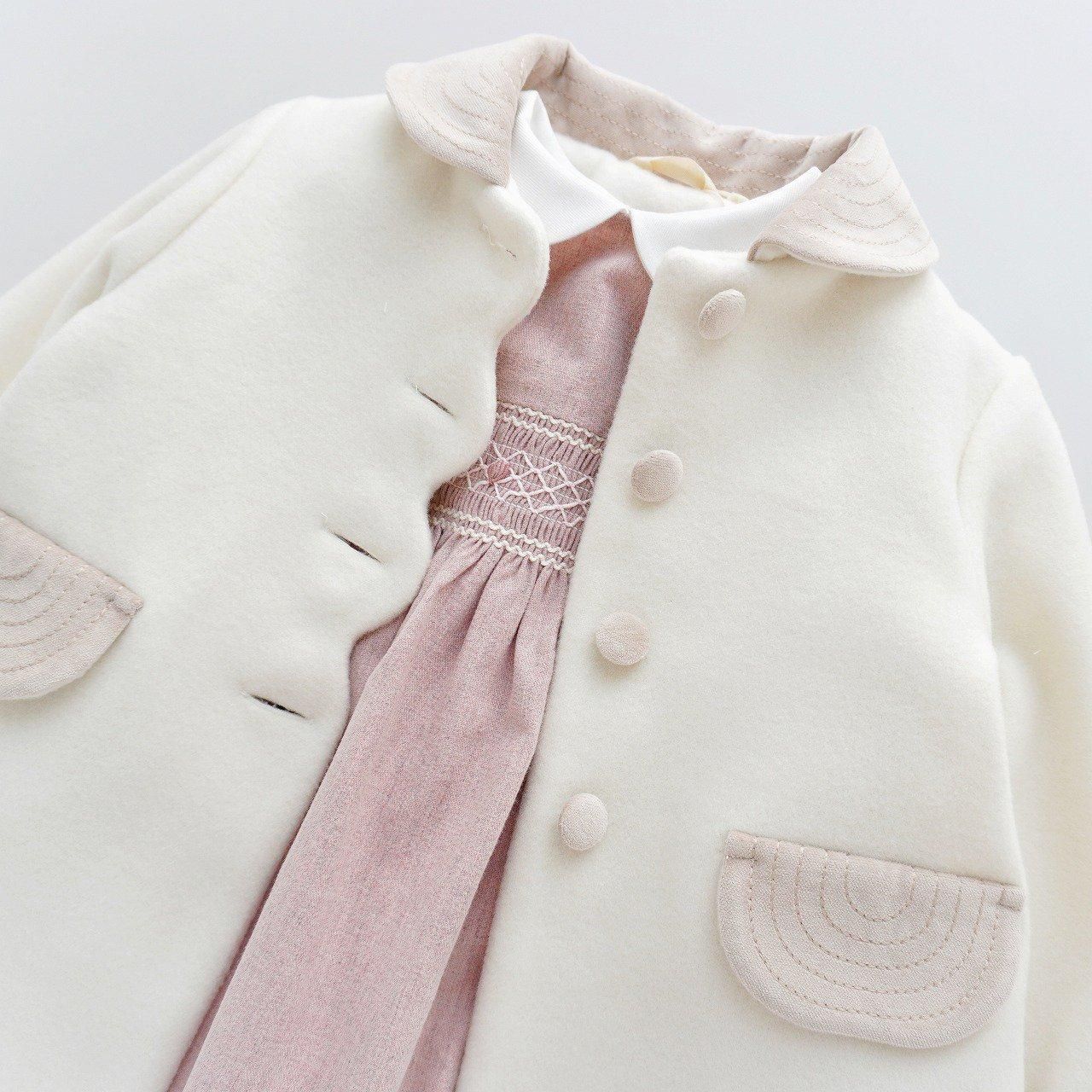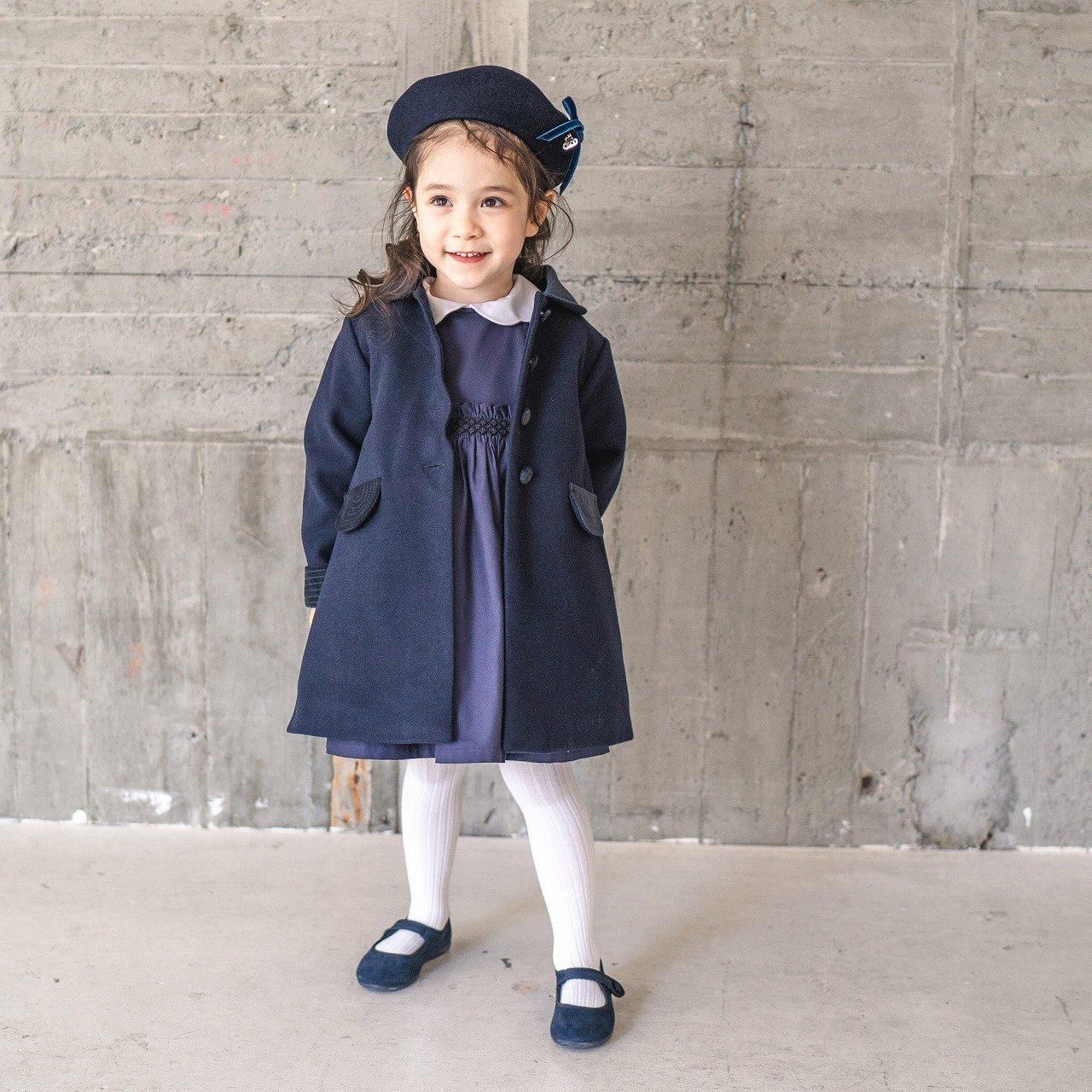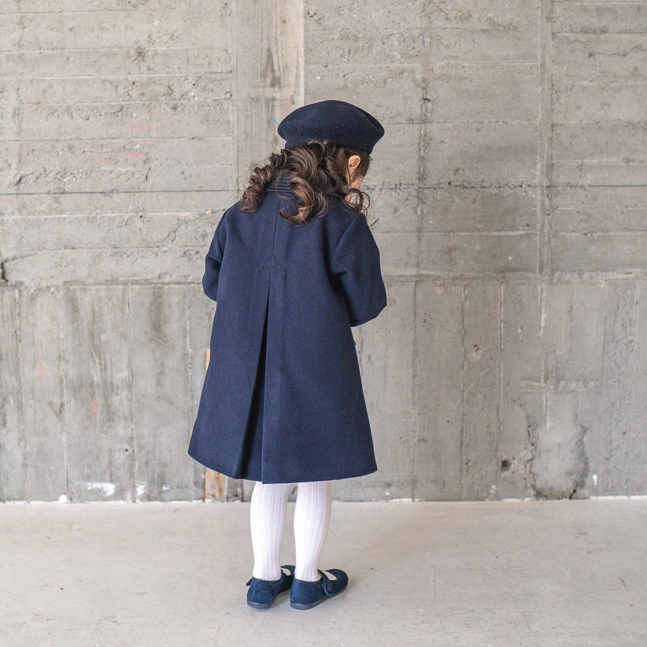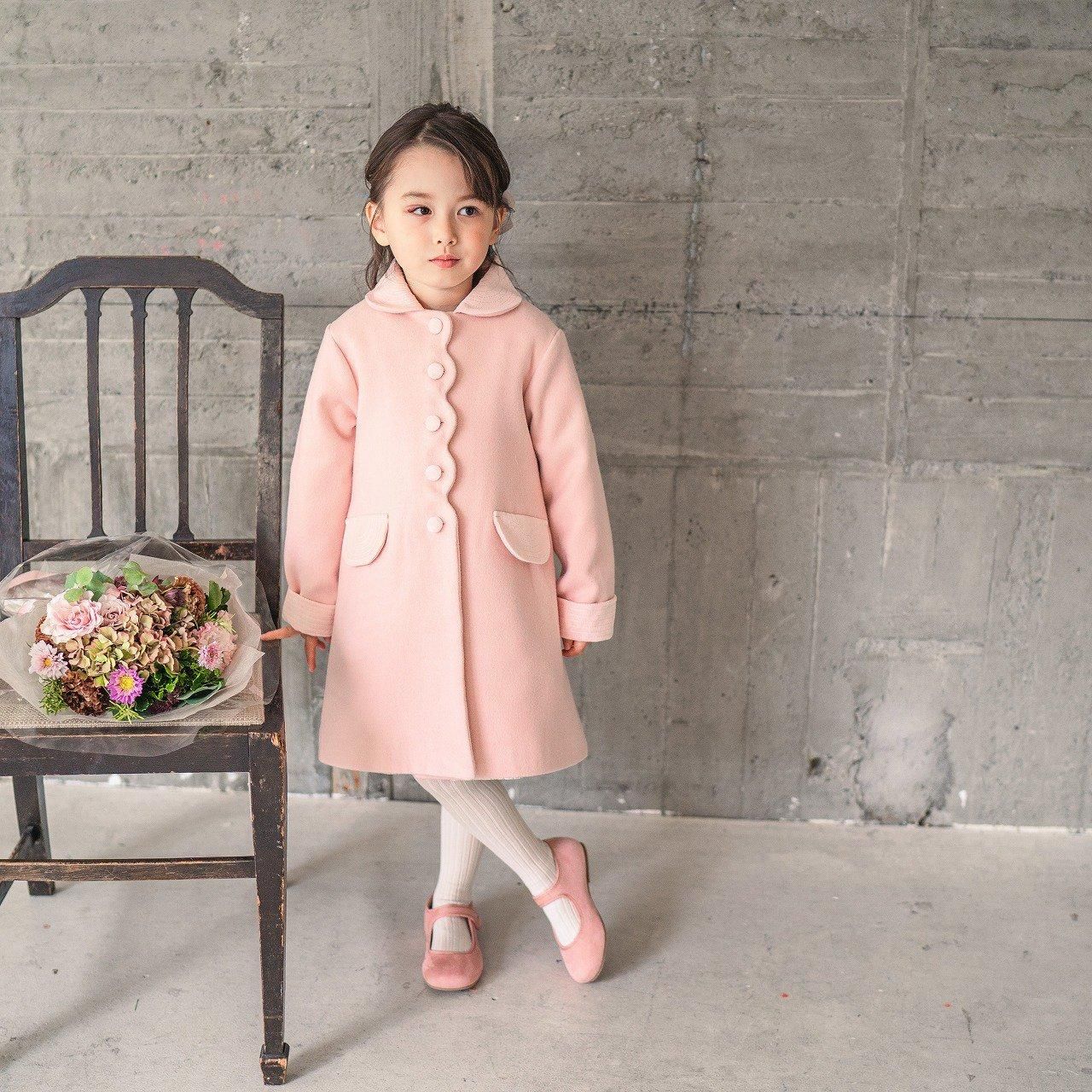 ふわふわのフェルト風のお生地に、上質なベロア素材のお襟、カフス、ポケットカバーがアクセントに。