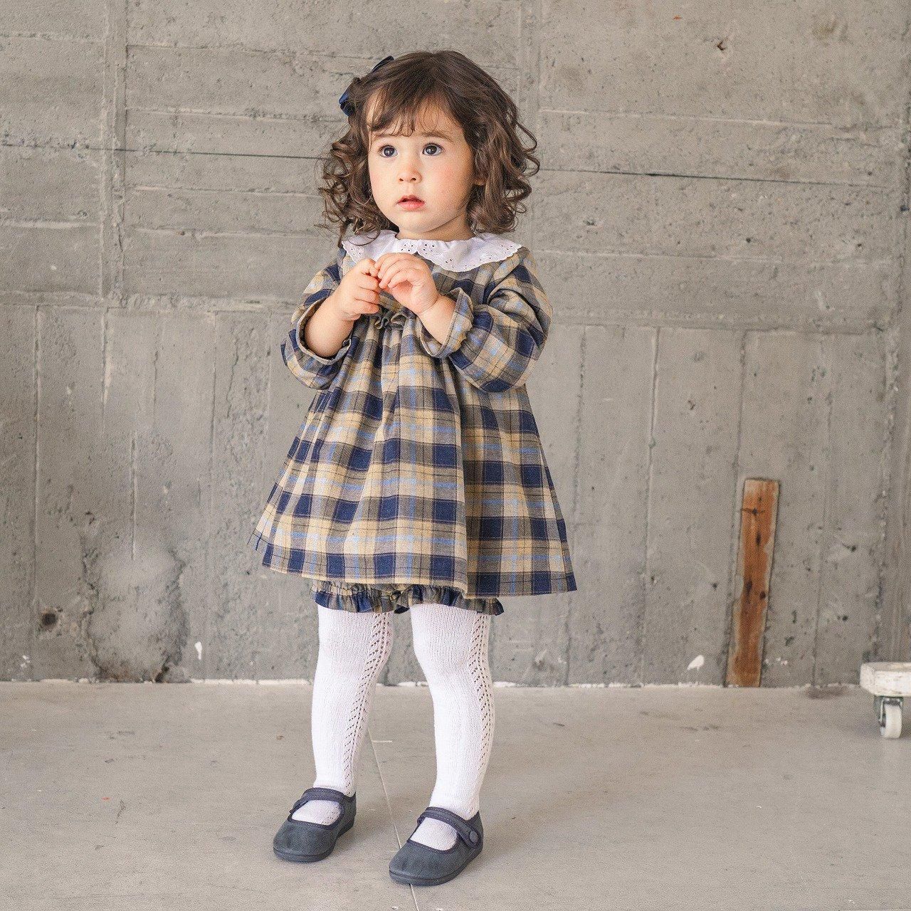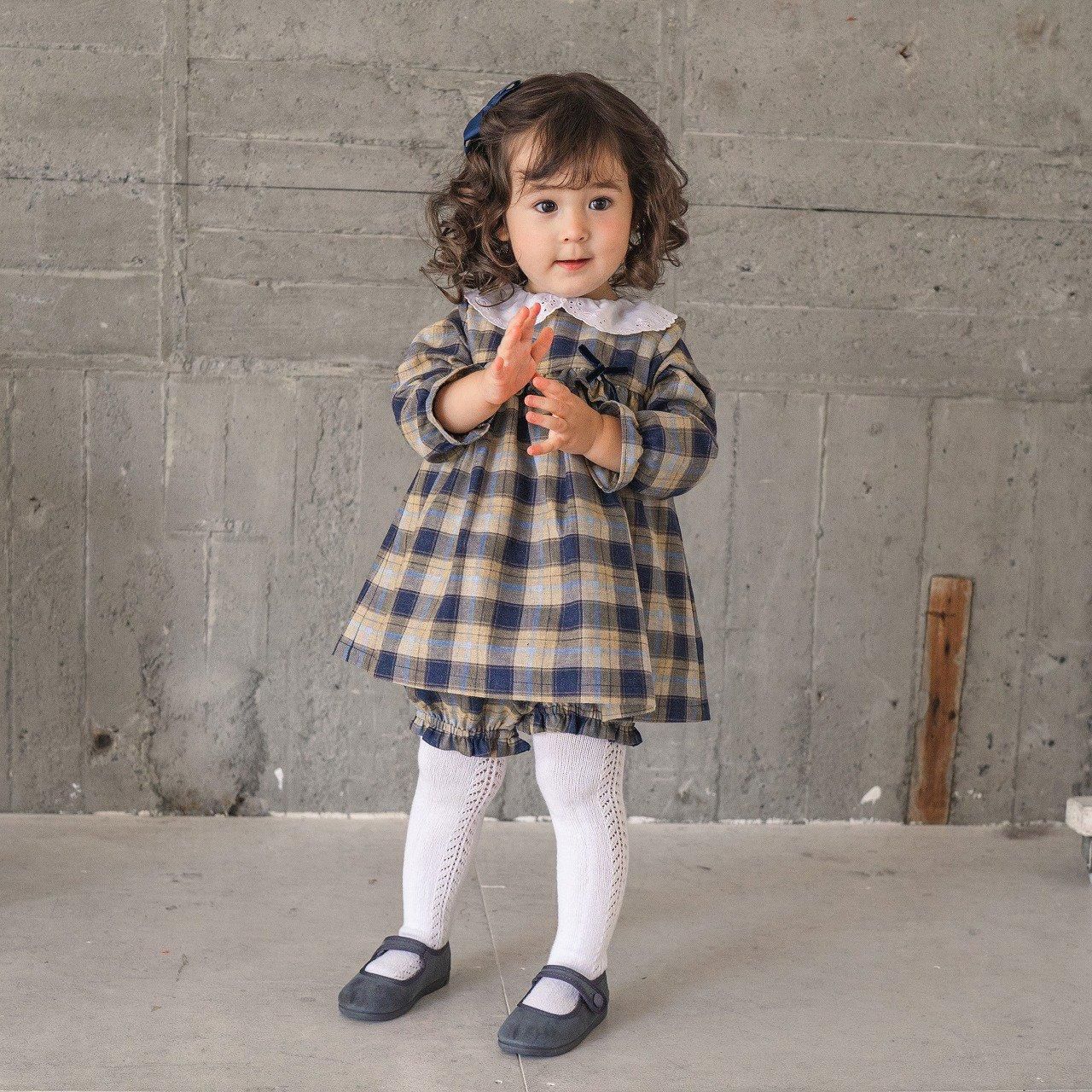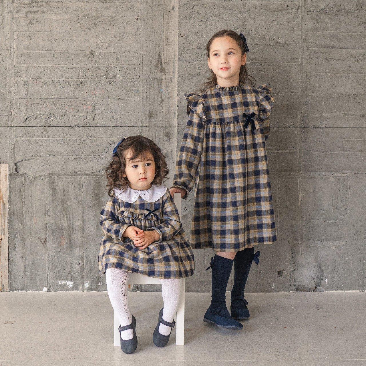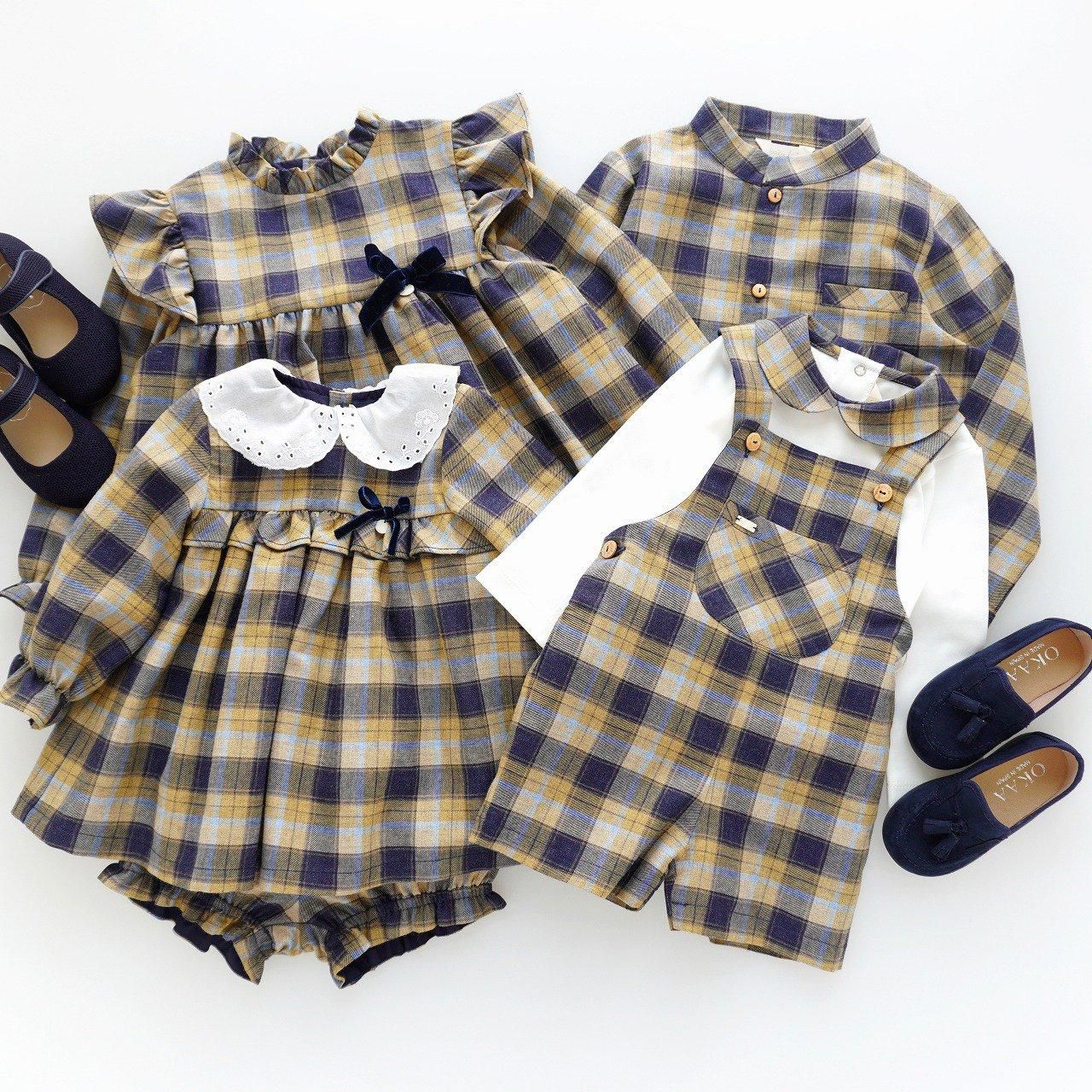 ネイビー、イエロー、水色の入ったとても素敵なタータン生地を使用しています。