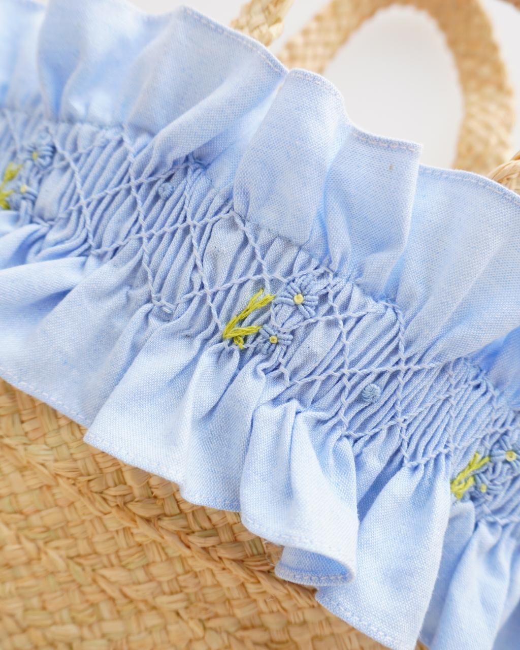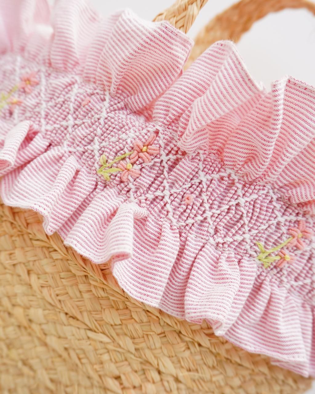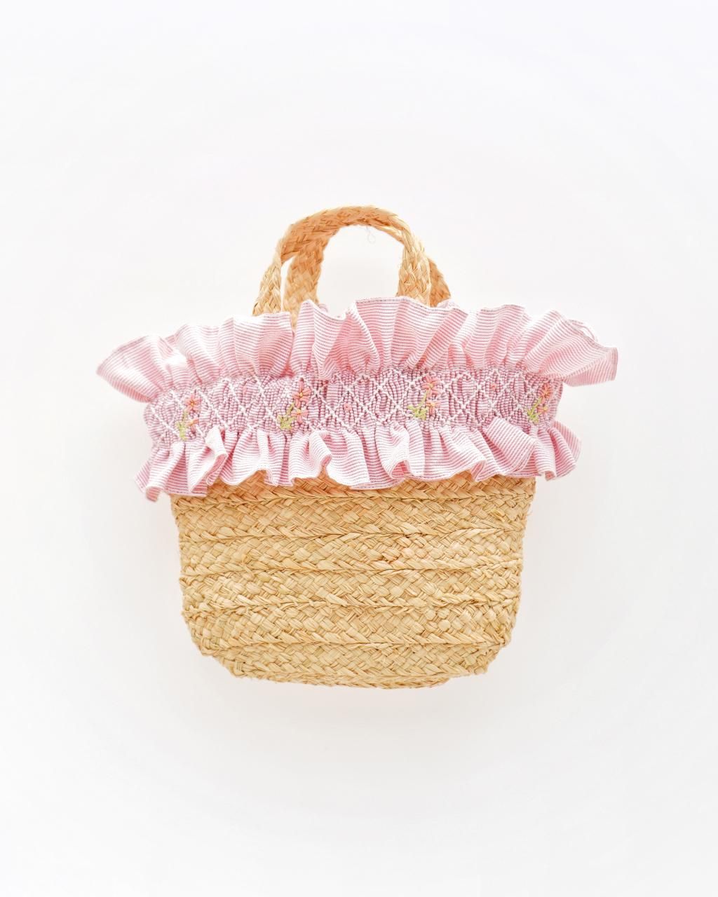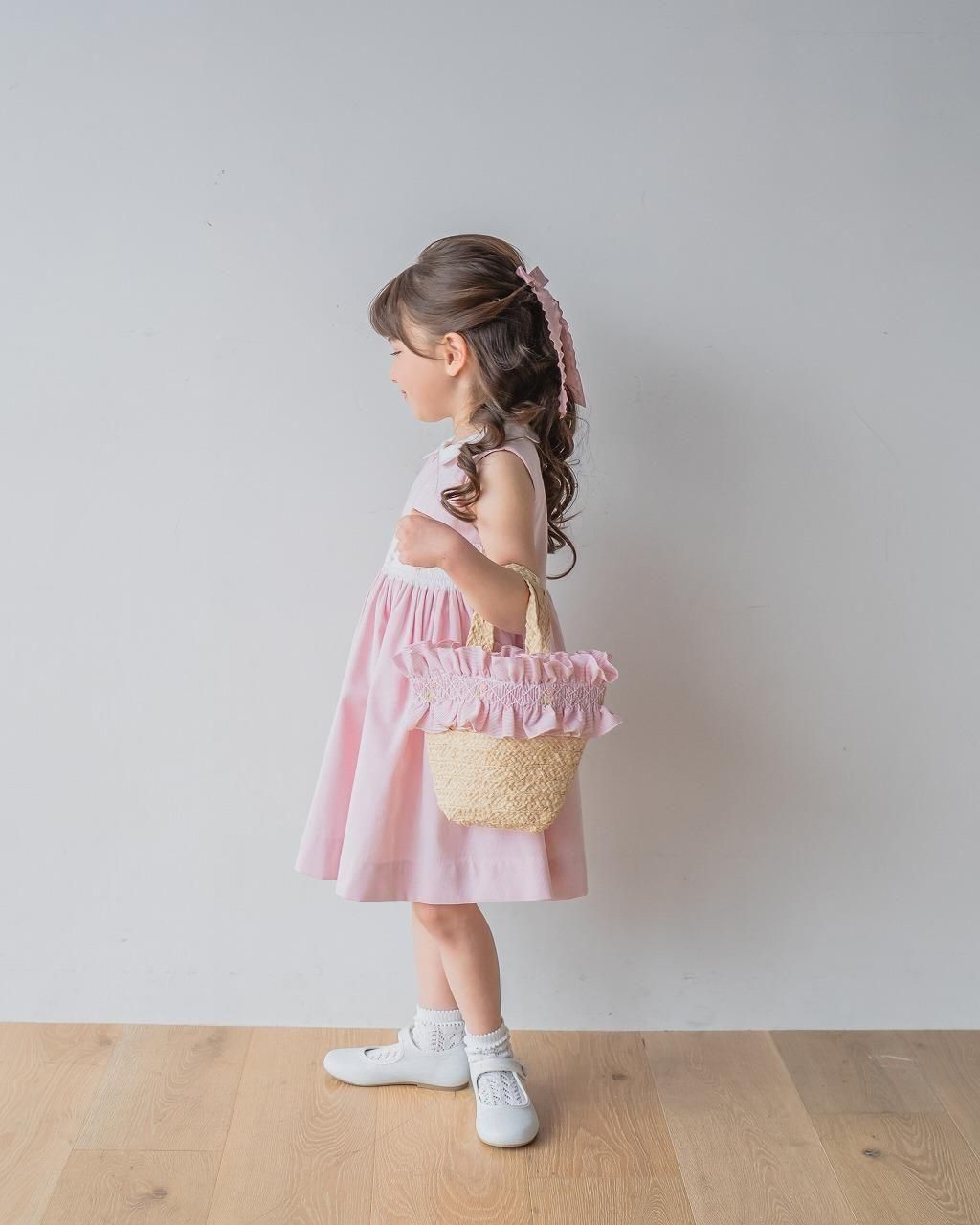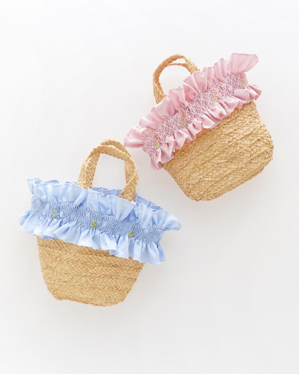 スモッキング刺繍のフリルがかわいいかごバッグがやってきました。