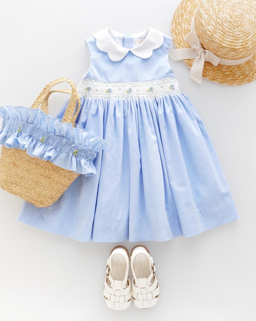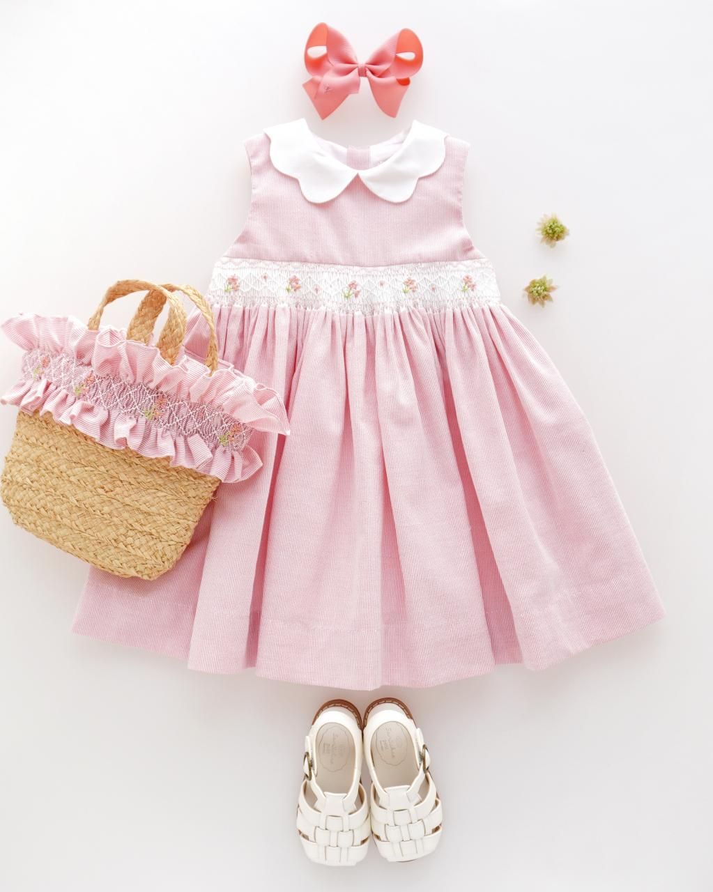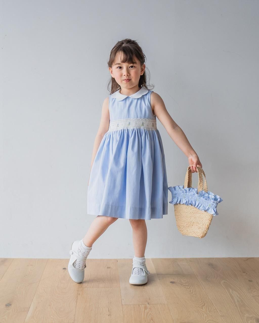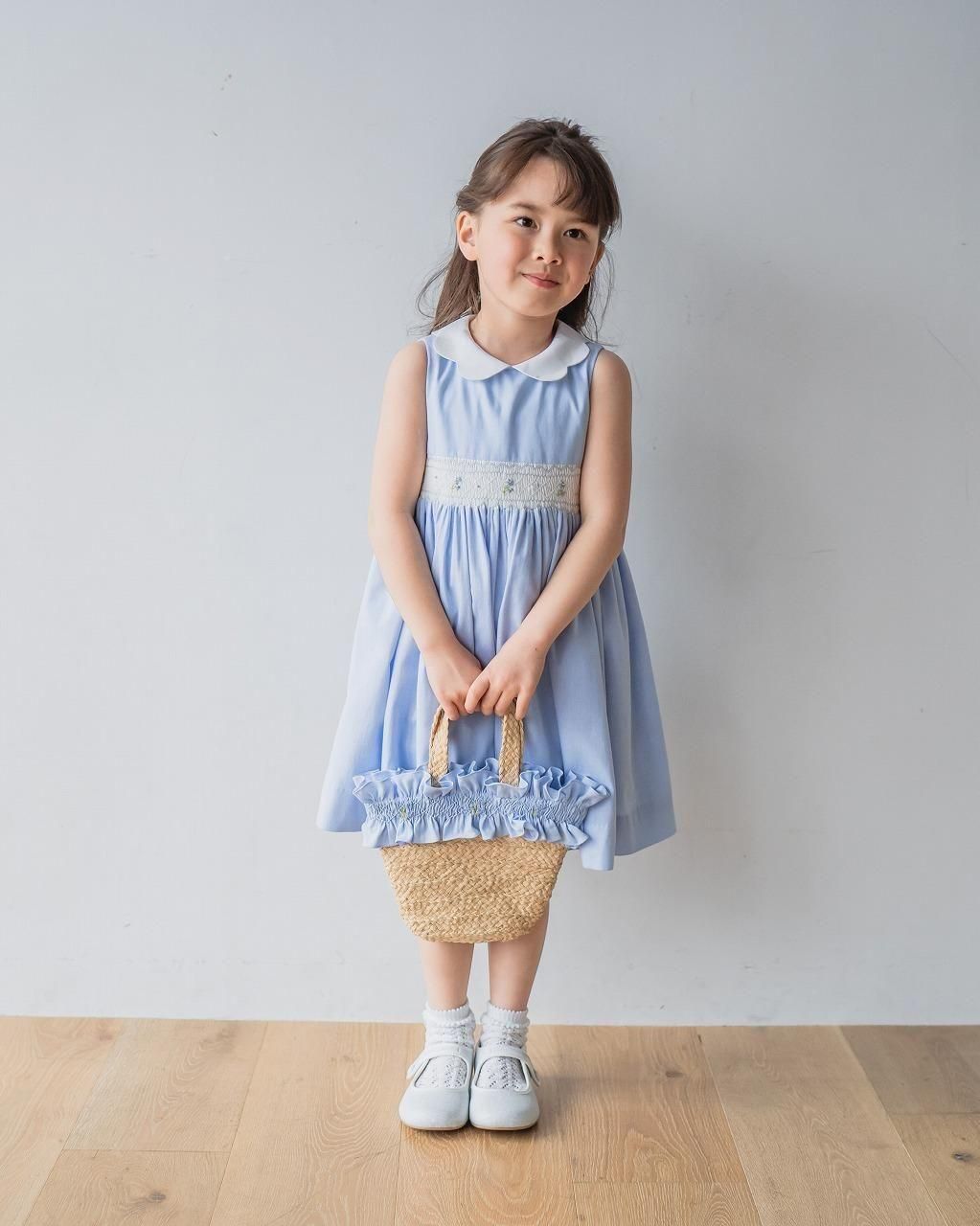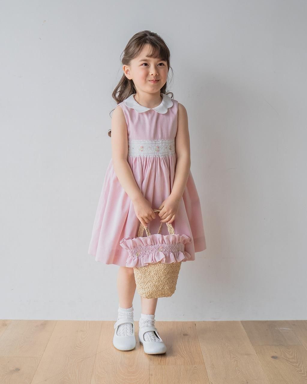 スモッキング刺繍のフリルがかわいいかごバッグがやってきました。