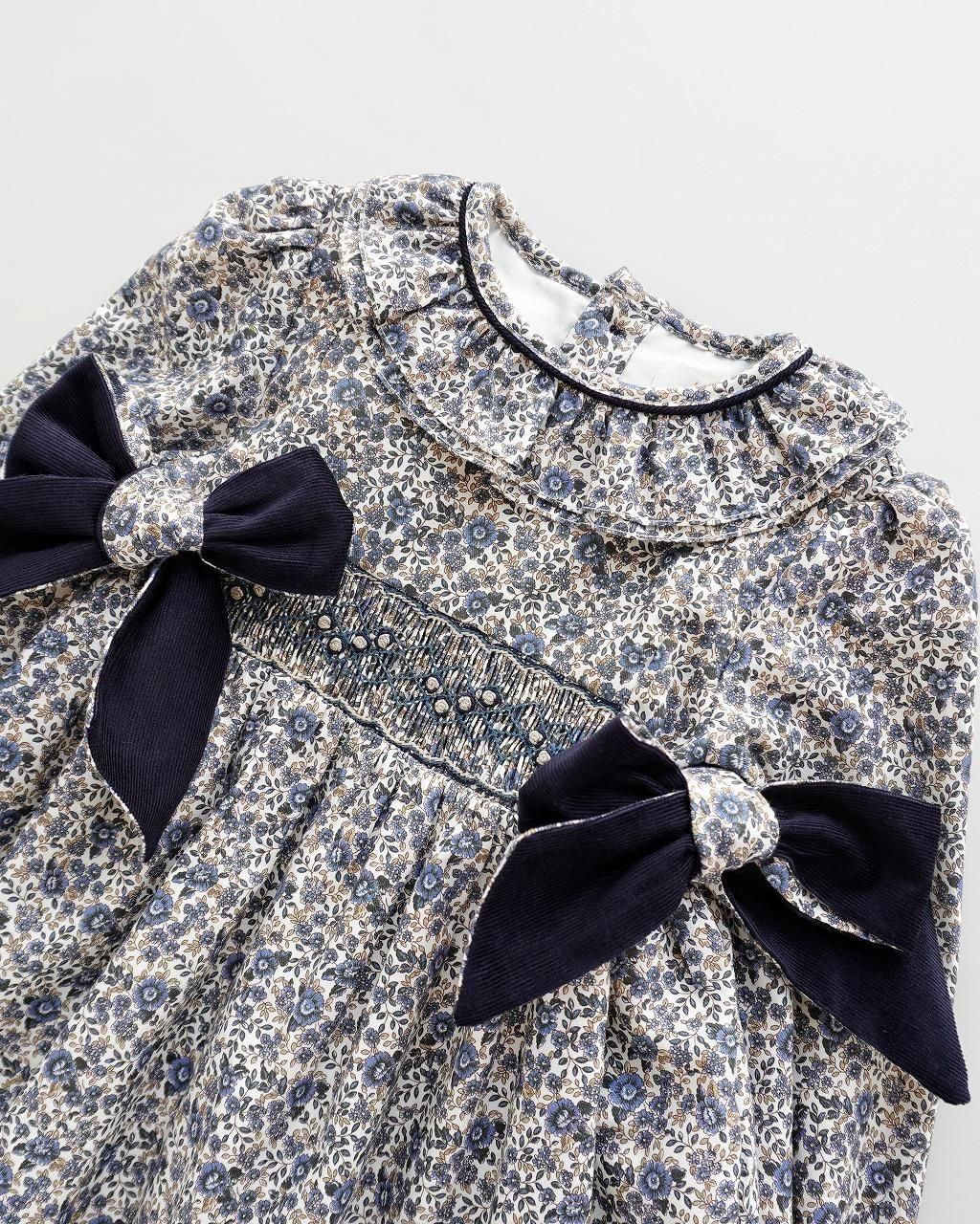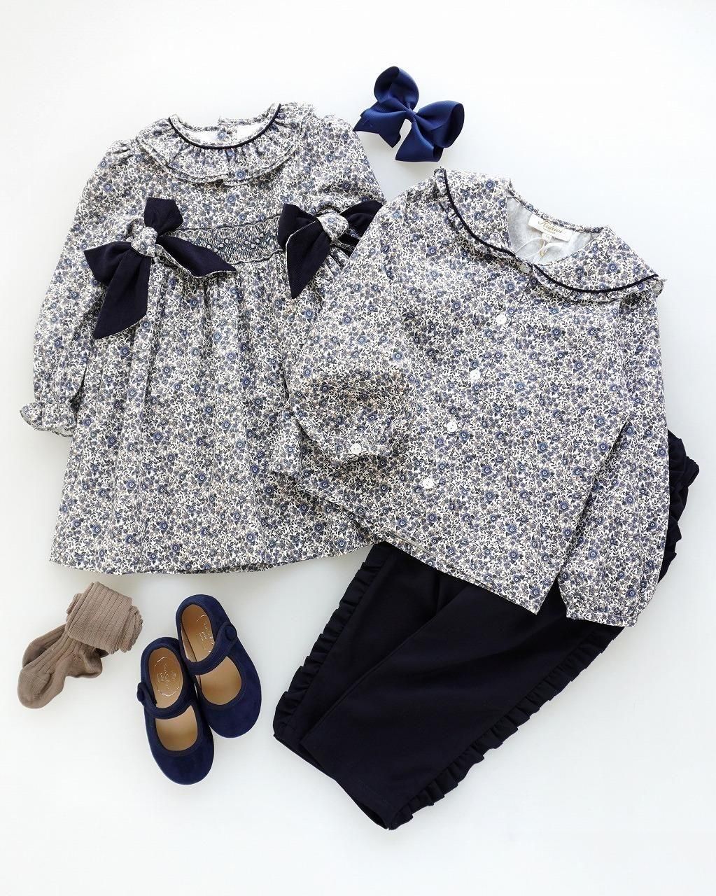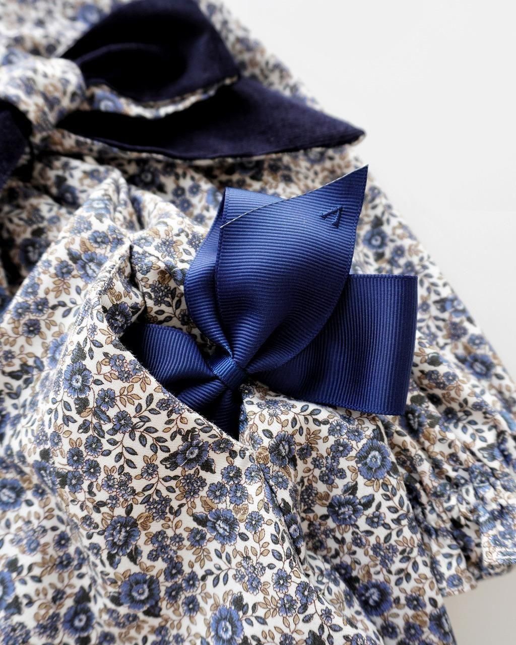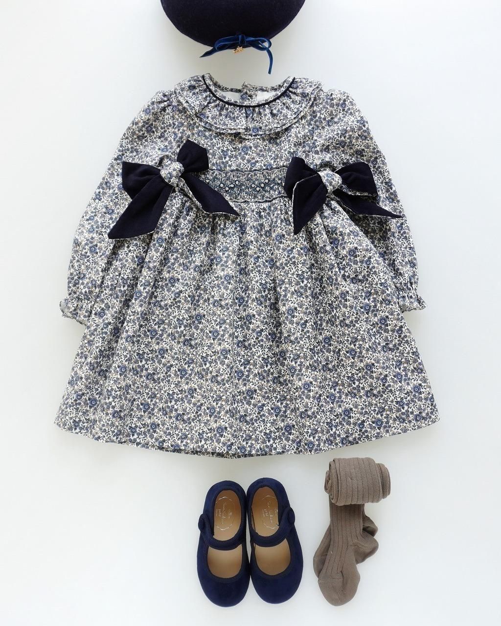 とてもシックな、ネイビーの花柄が印象的なワンピースです。