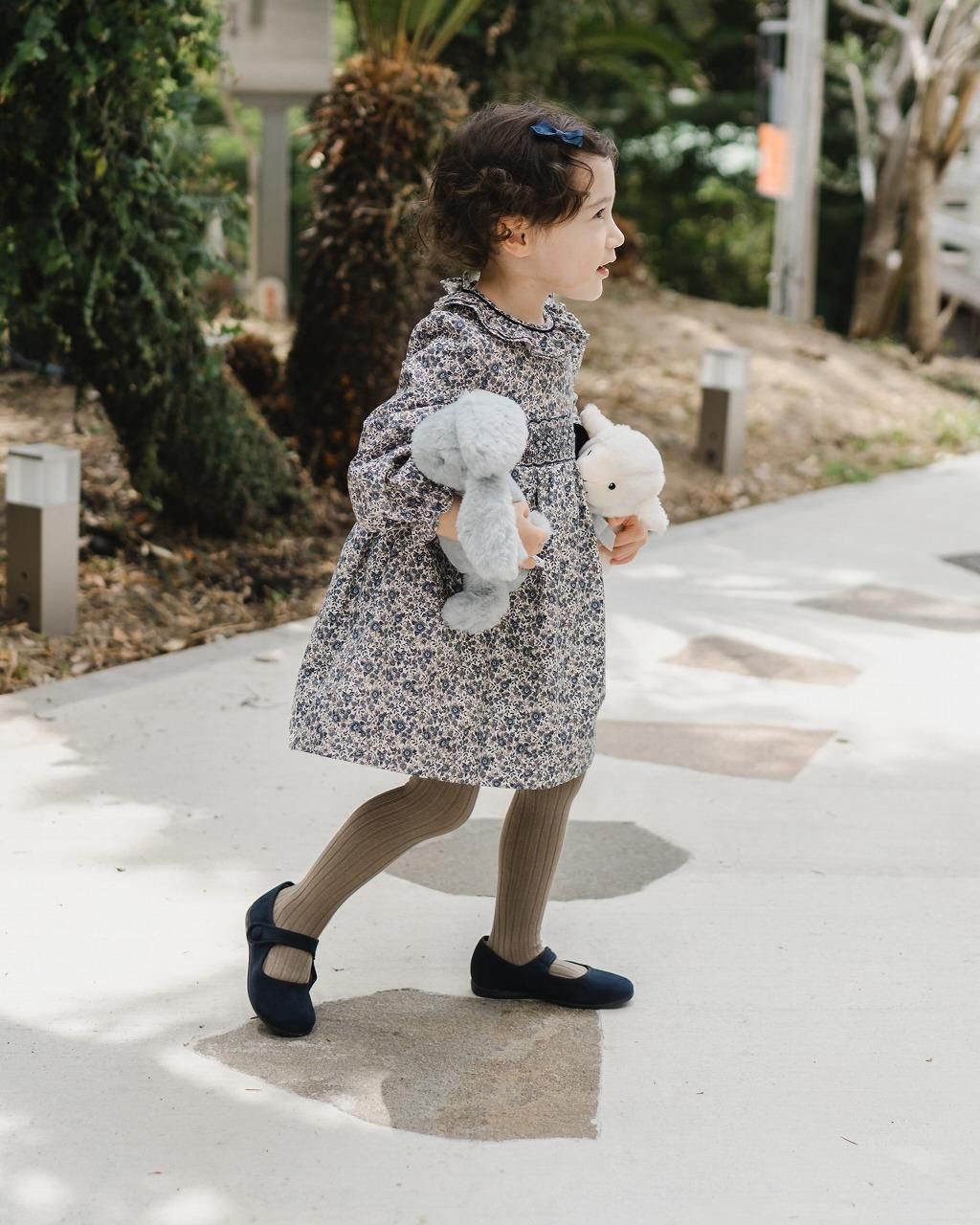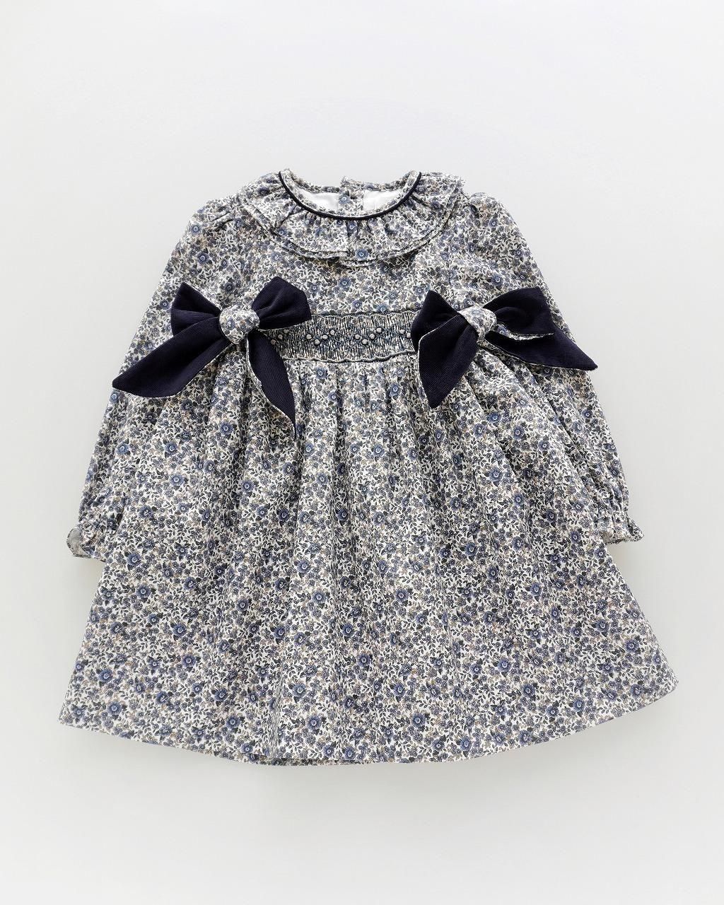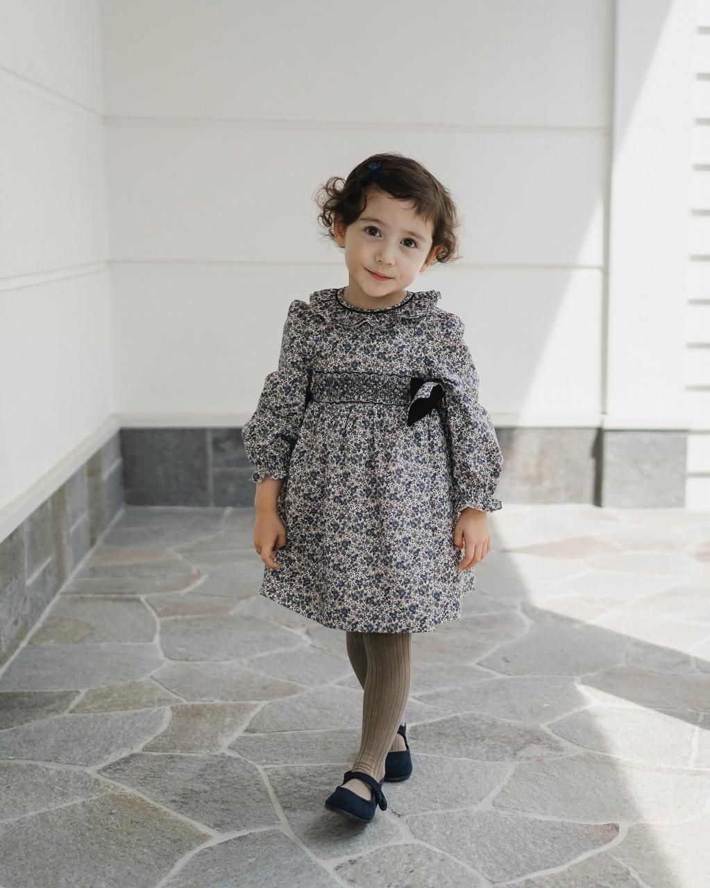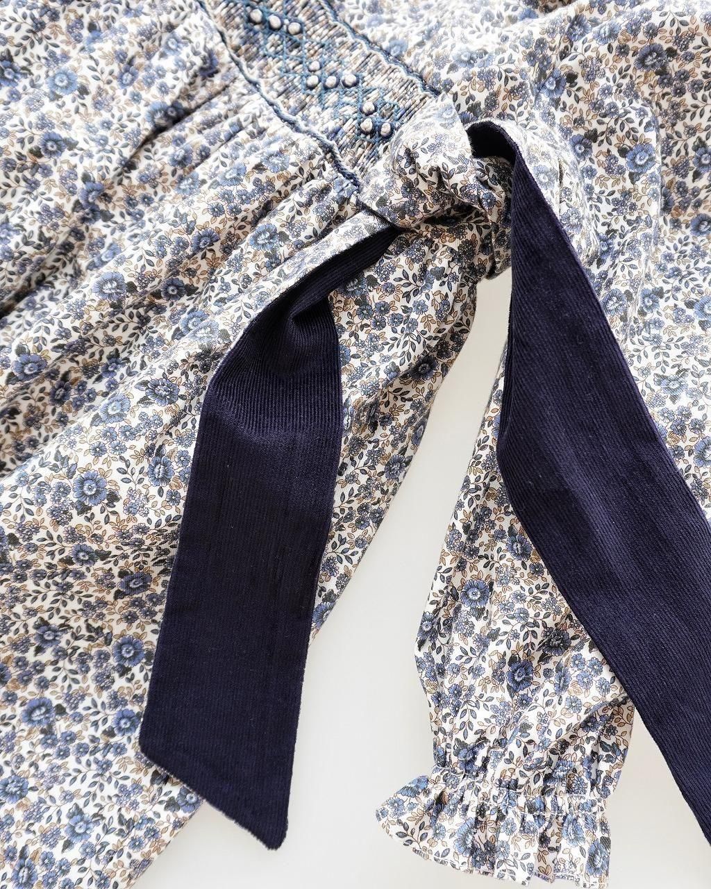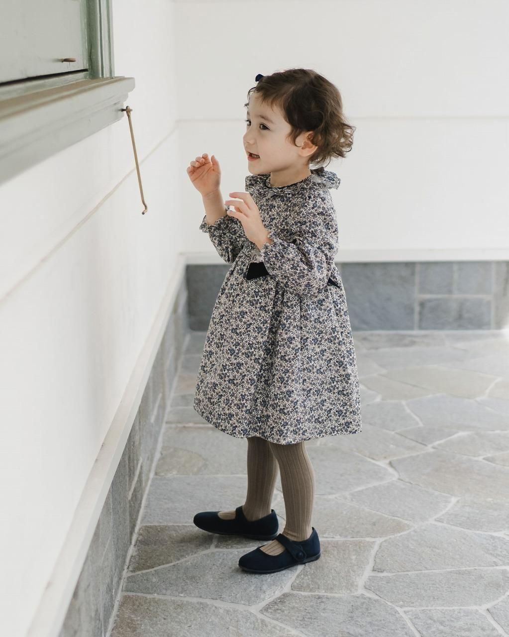 とてもシックな、ネイビーの花柄が印象的なワンピースです。
