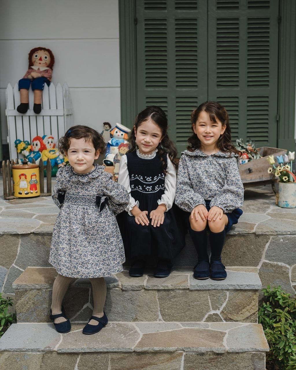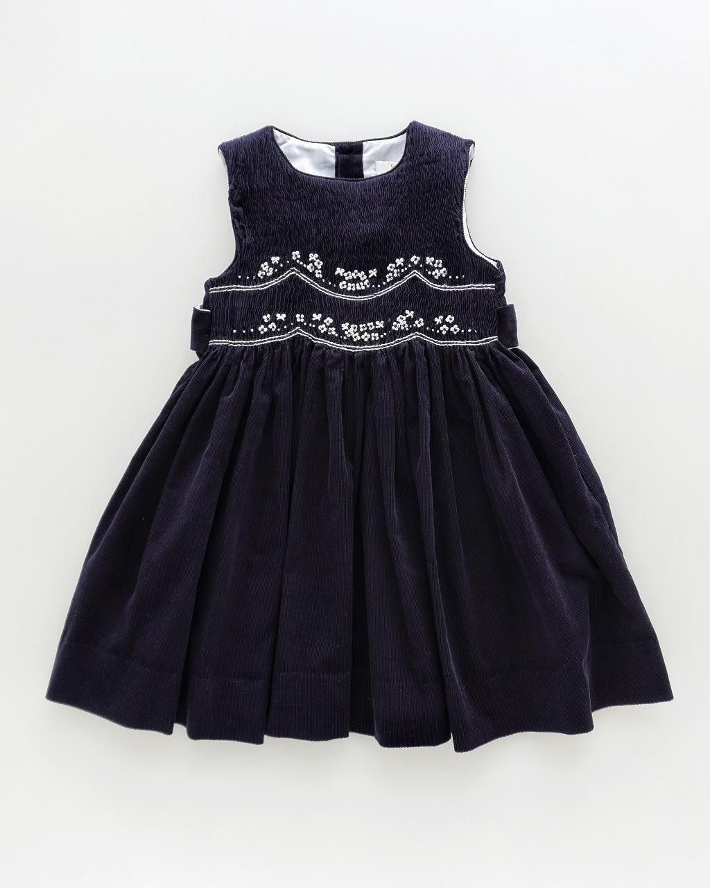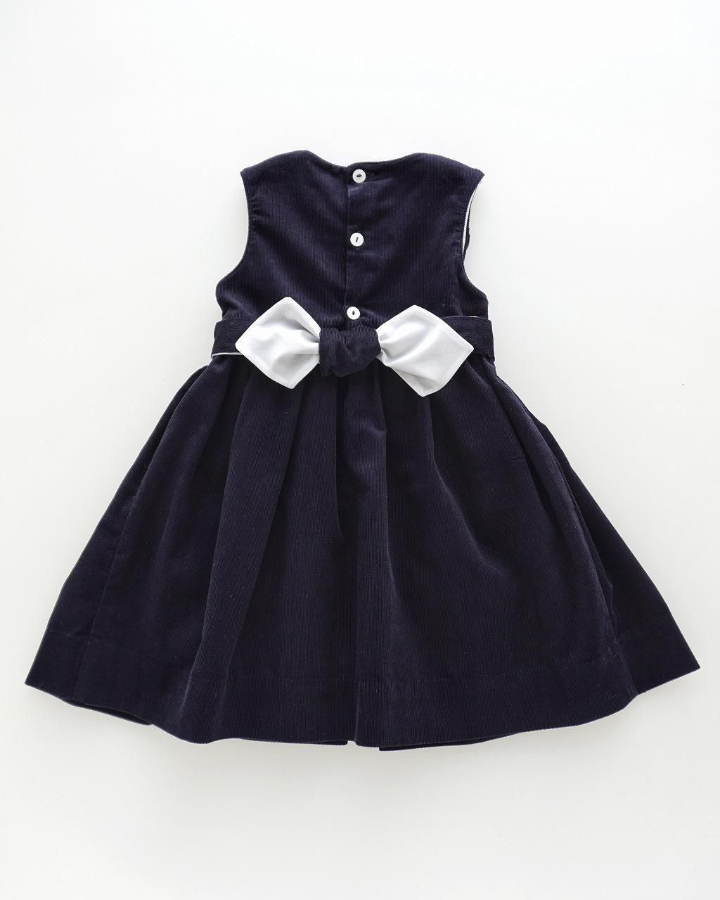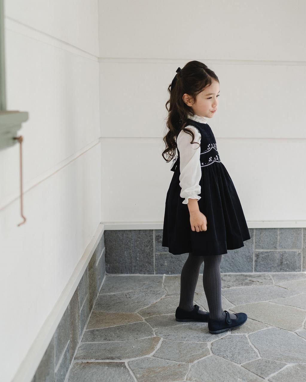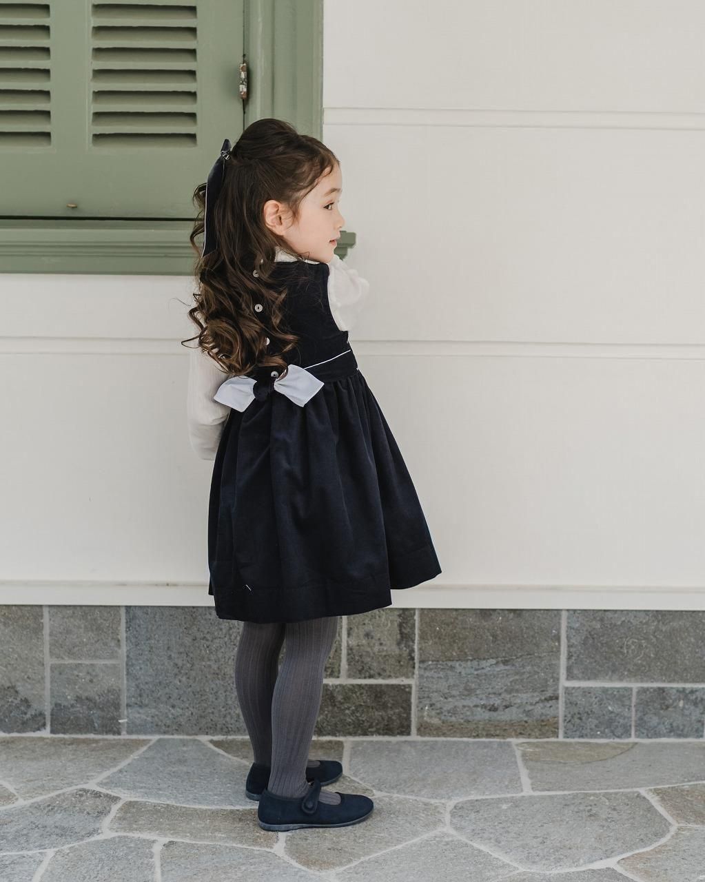 毎年人気のネイビーですが、今年は身頃全体にスモッキング刺繍のはいったジャンパースカートをチョイス。