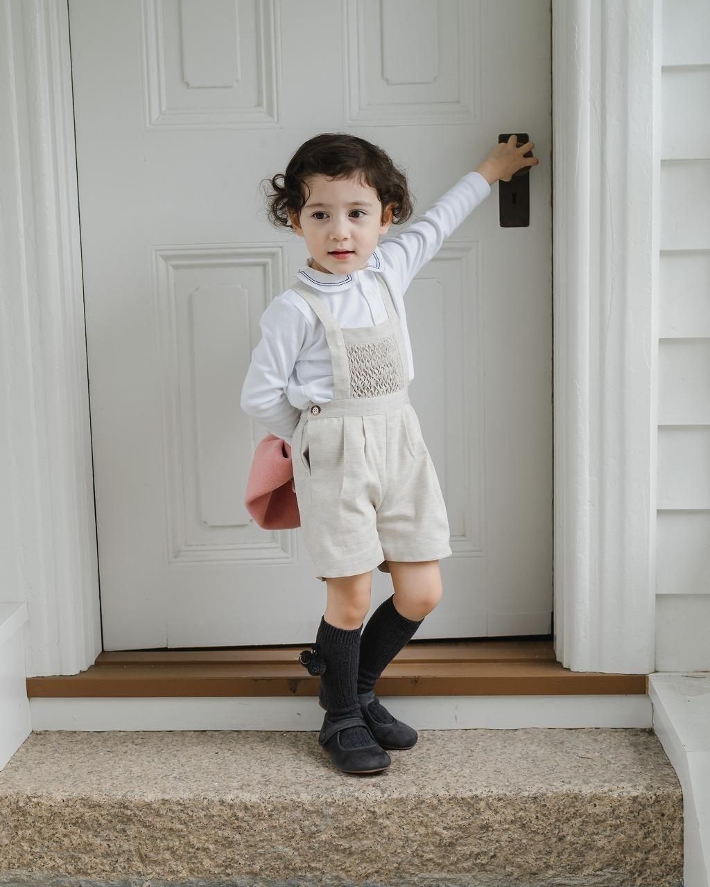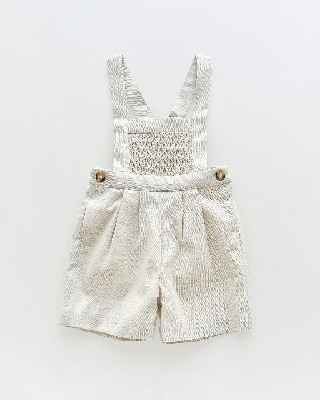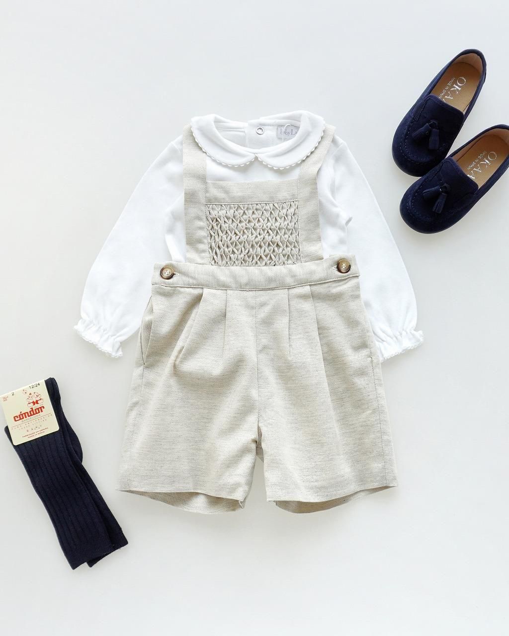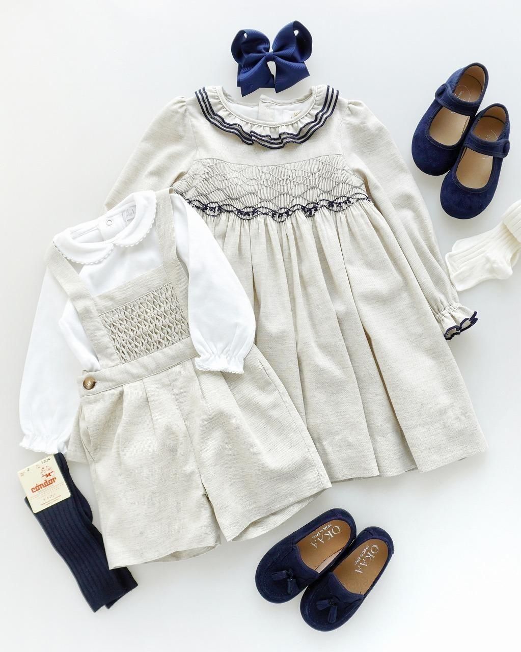 前あて部分にスモッキングの入った、男の子では貴重なハンドスモッキングアイテムです♪
