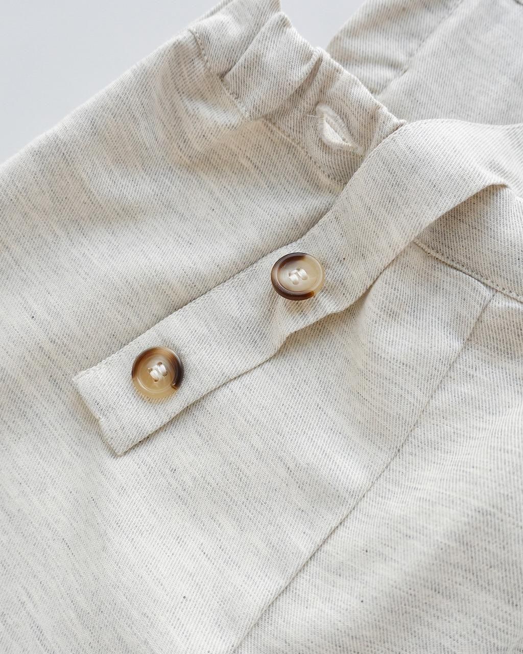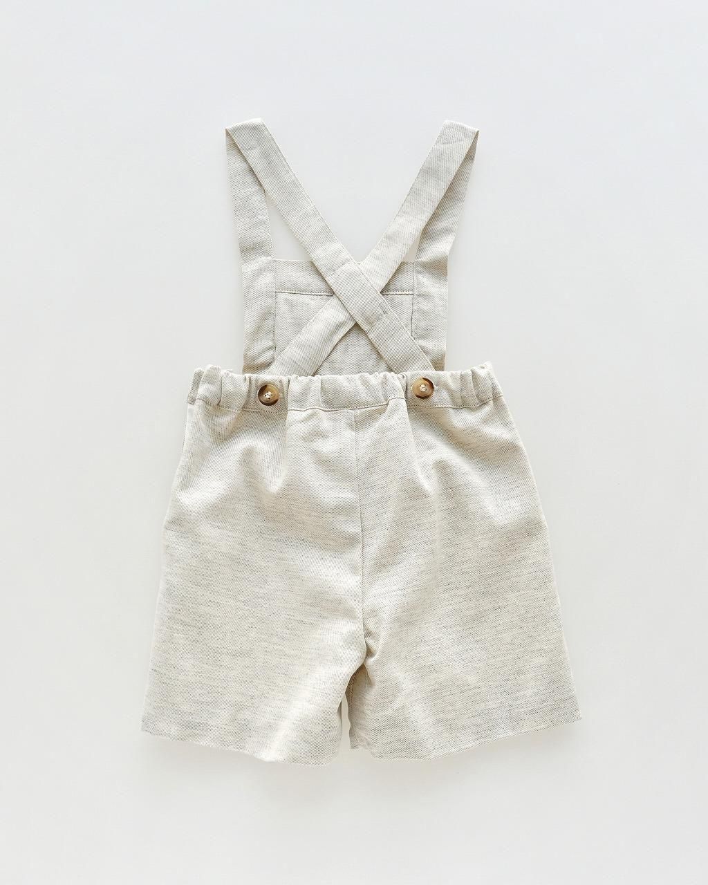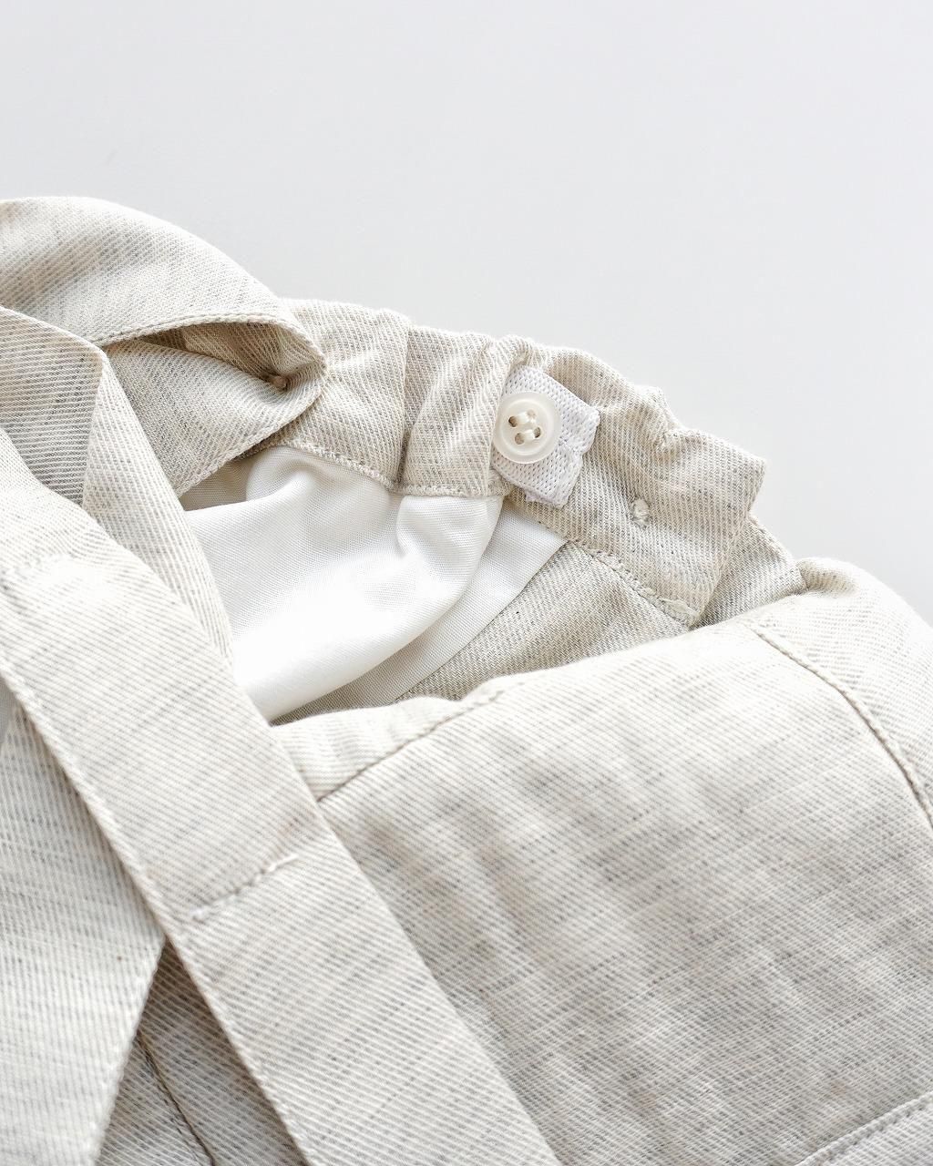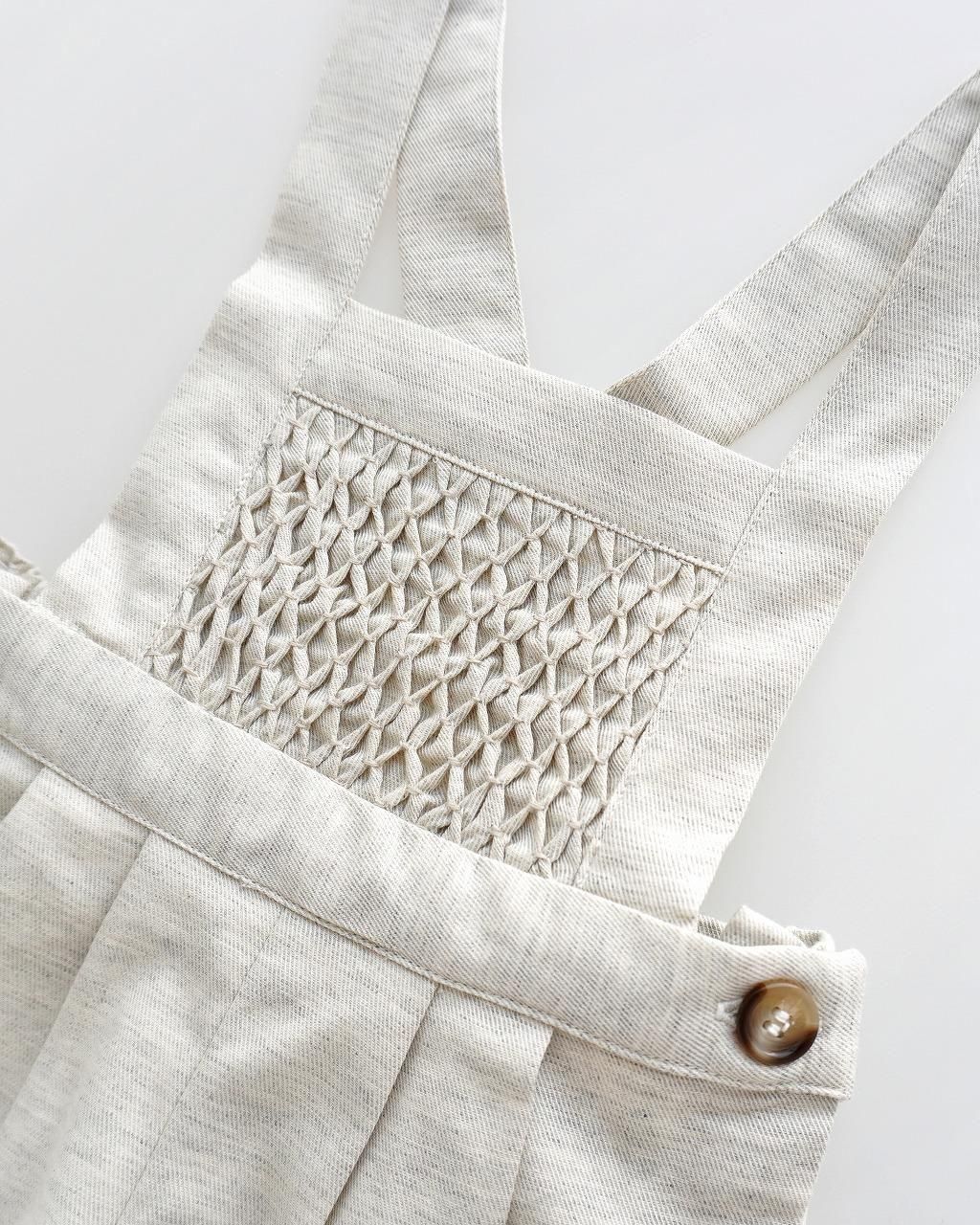 フランス語でメランジと呼ばれる 杢の入った、あたたかみのあるヴィエラ素材を使用したオーバーオール。