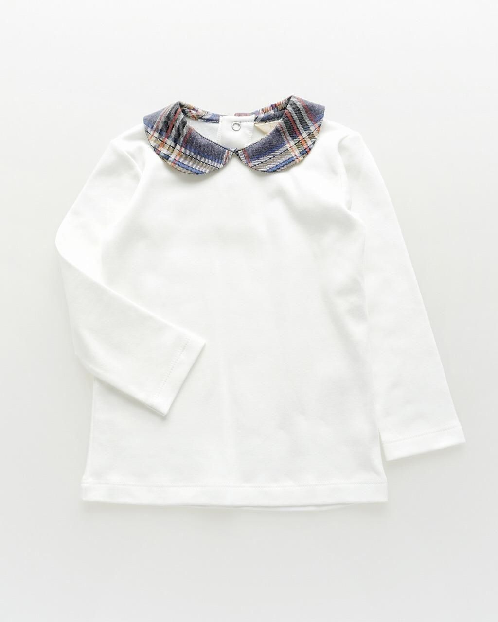 杢の入ったやわらかなインディゴカラーに、オレンジ、ベージュ、ホワイトなどの大き目チェックが