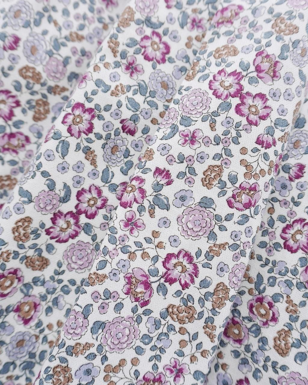 こちらのワンピースは、なんとも言えない美しいヴァイオレットカラーが目を引く生地を使用。