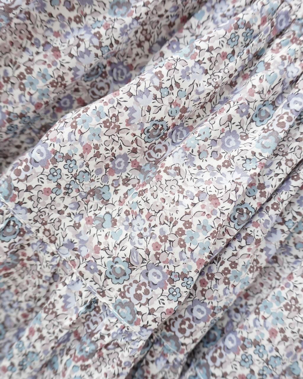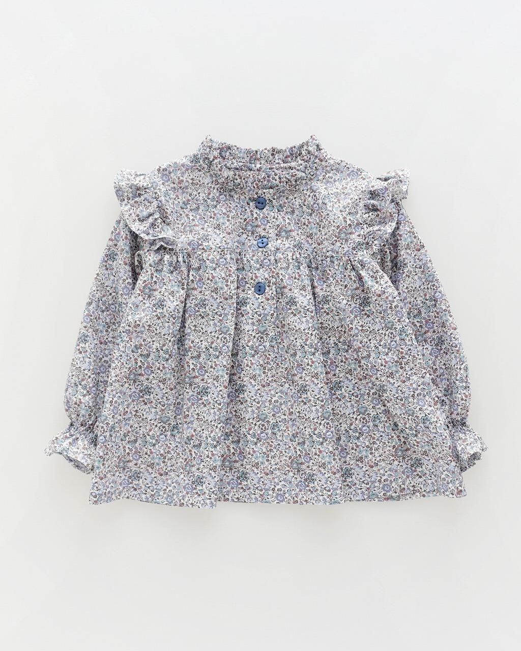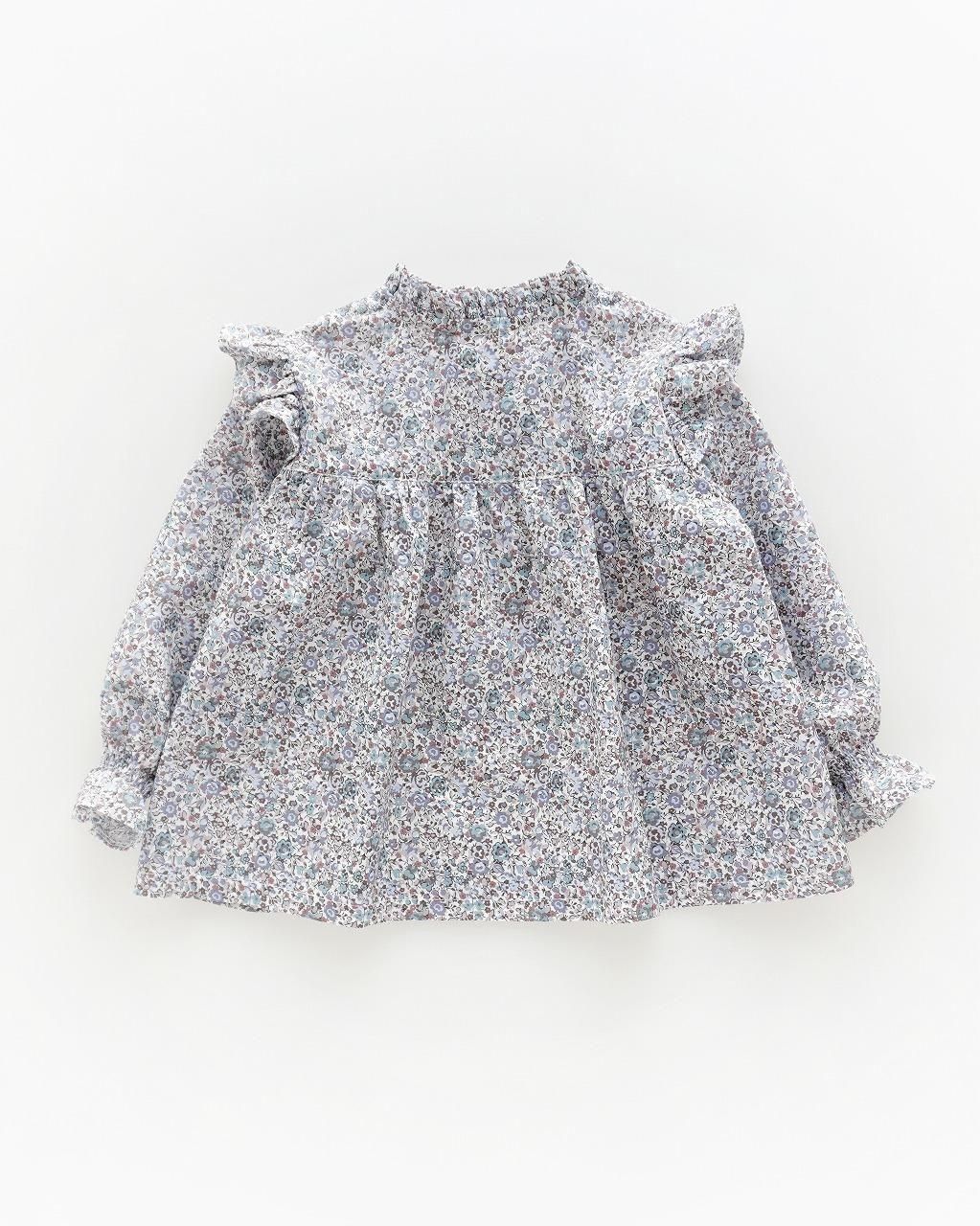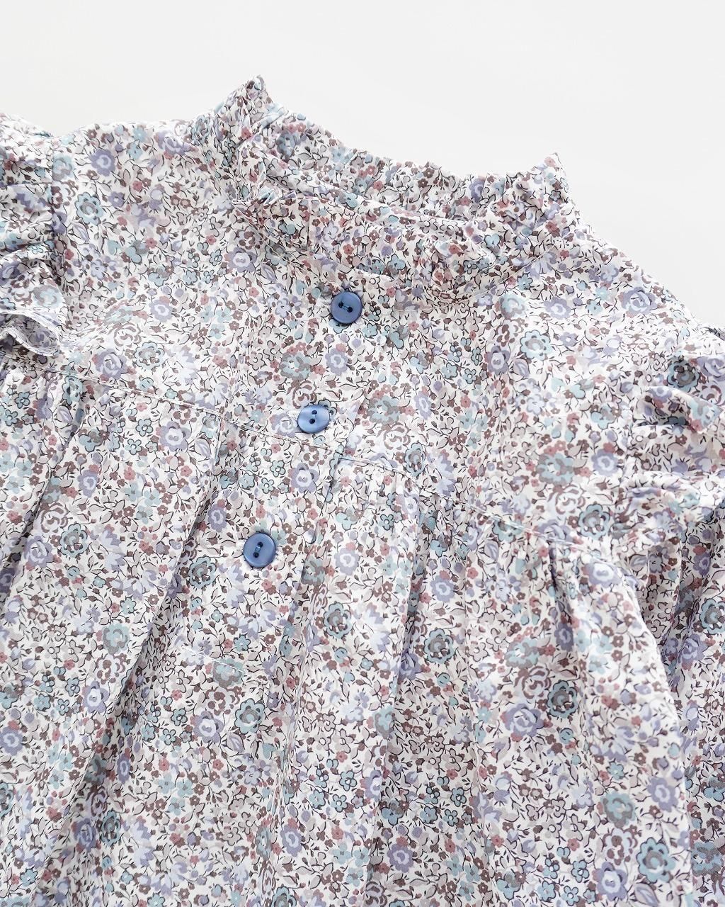 ショルダーフリル、高い位置での切り替えから ふんわりと広がる愛らしいフォルムが