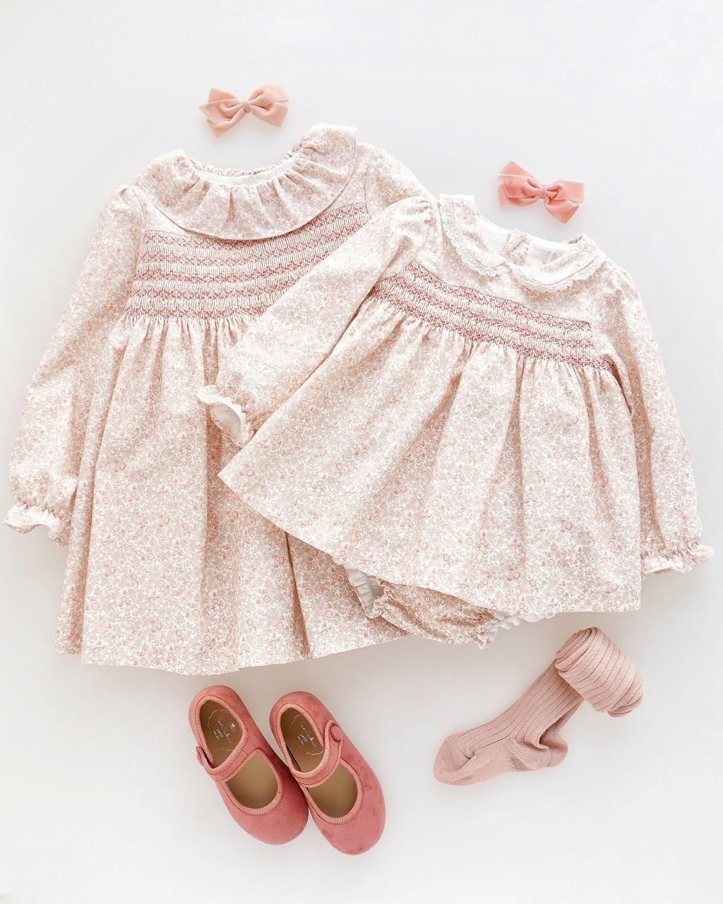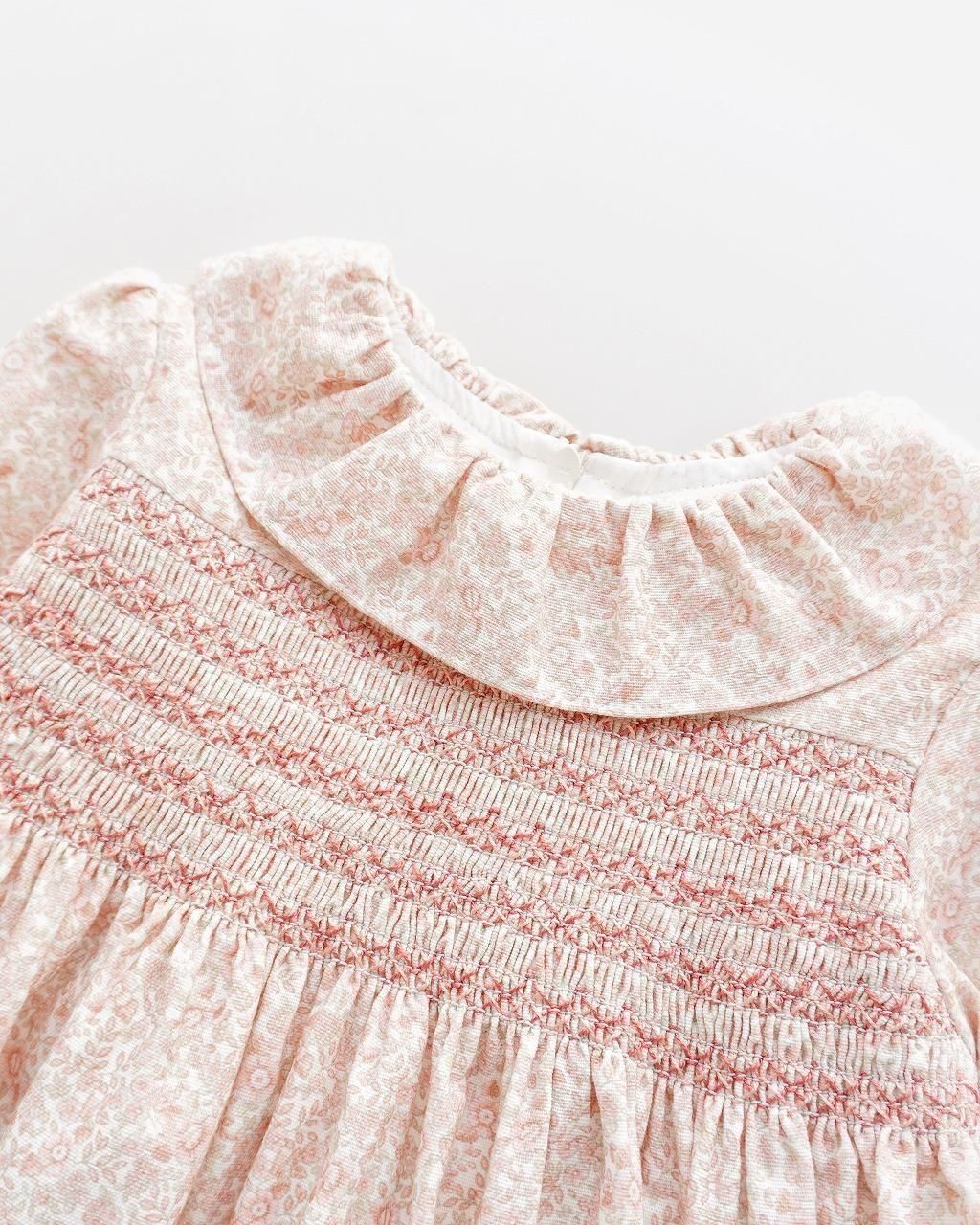 フリル襟、スモッキング(ミシン)デザインと、余すところなくカワイイを詰め込みました。