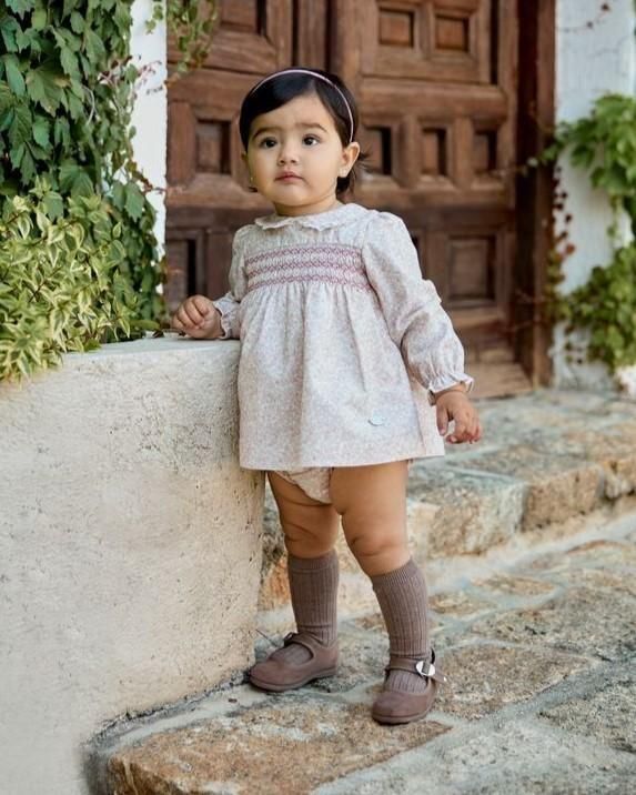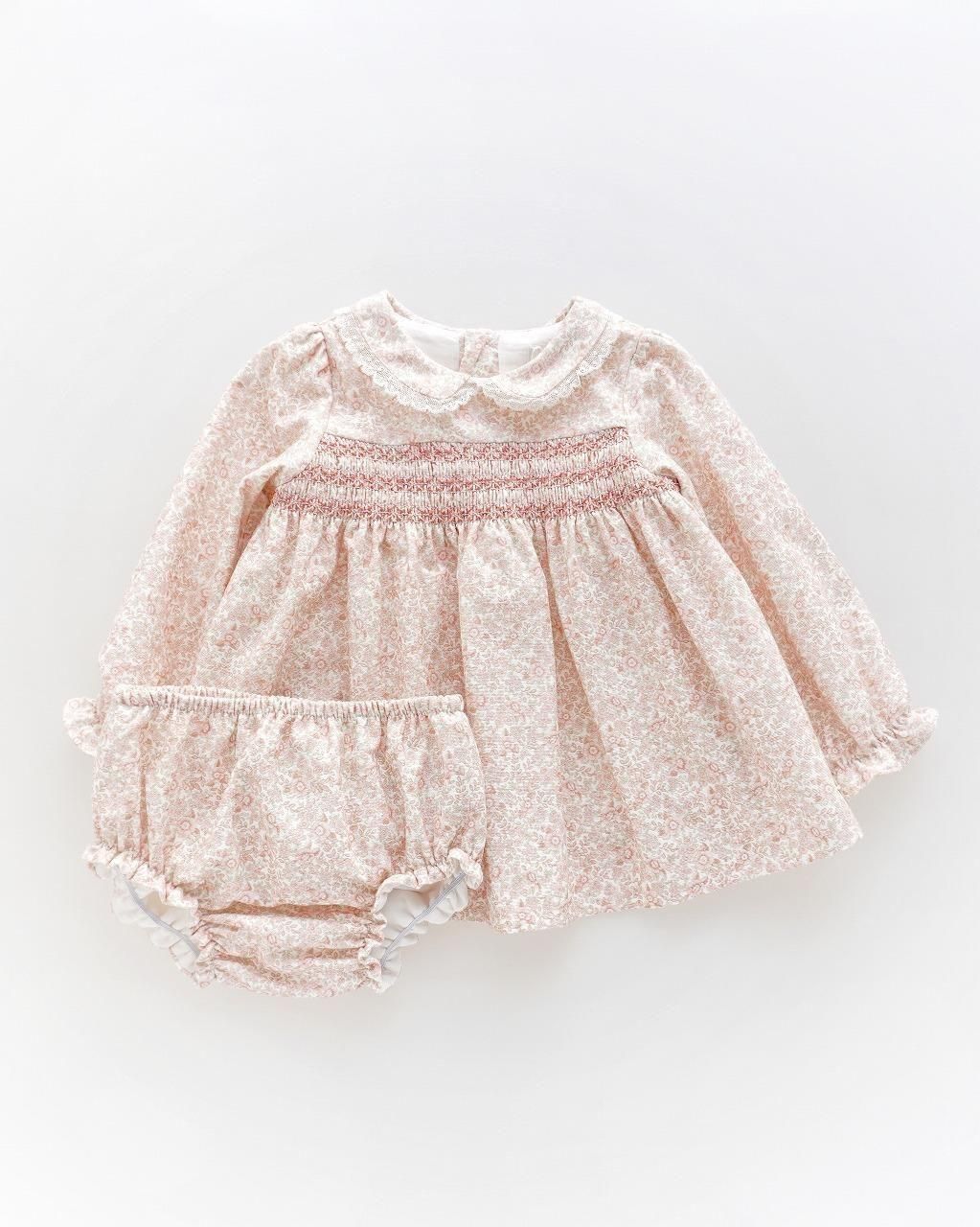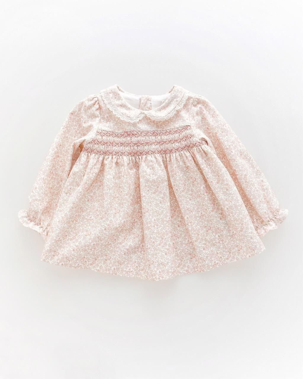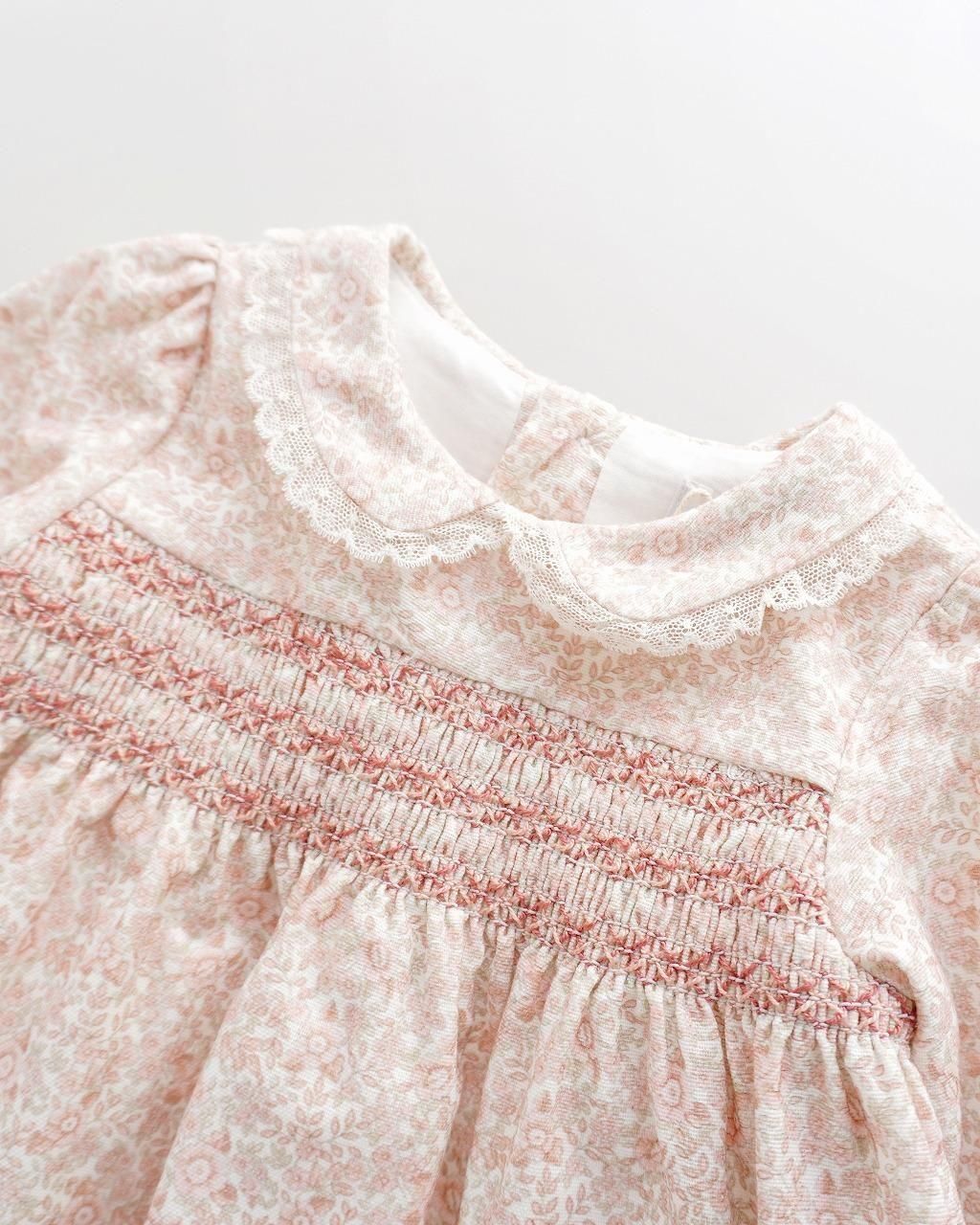 レース付きのお襟、スモッキング(ミシン)デザインと、余すところなくカワイイを詰め込みました。
