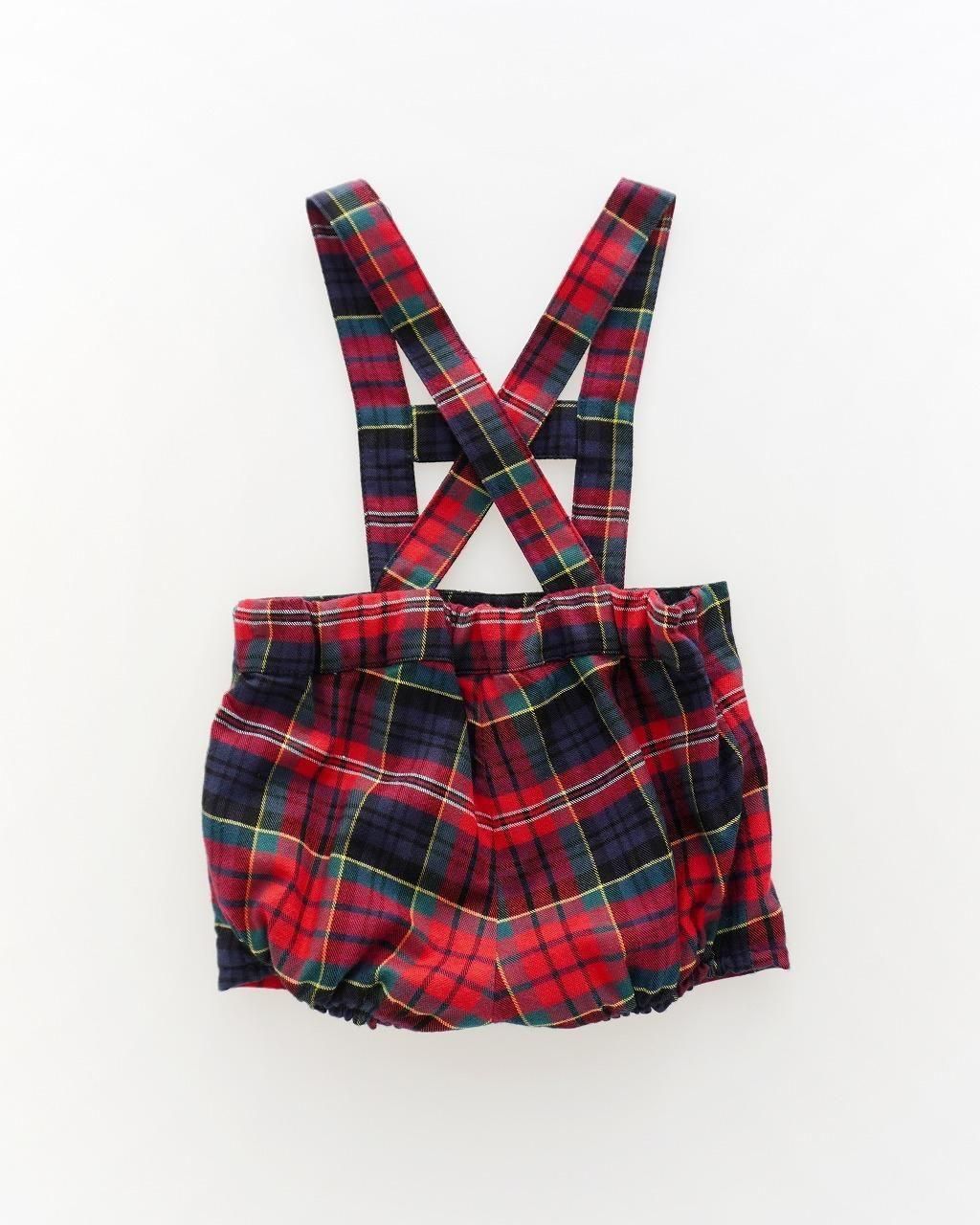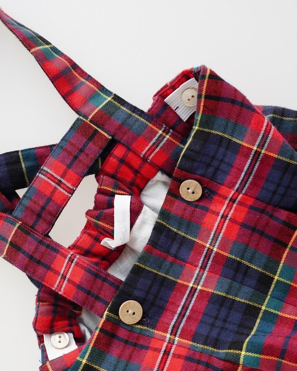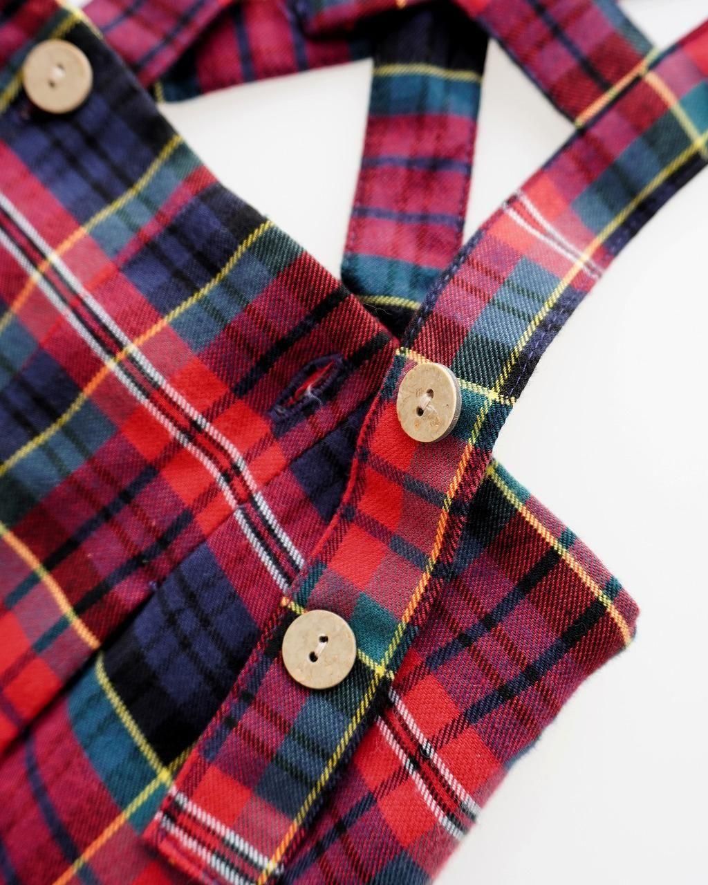 赤、ネイビー、グリーンのバランスが美しいタータン生地が